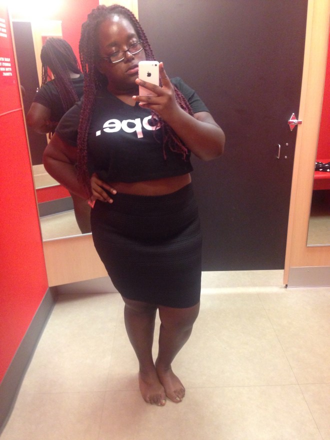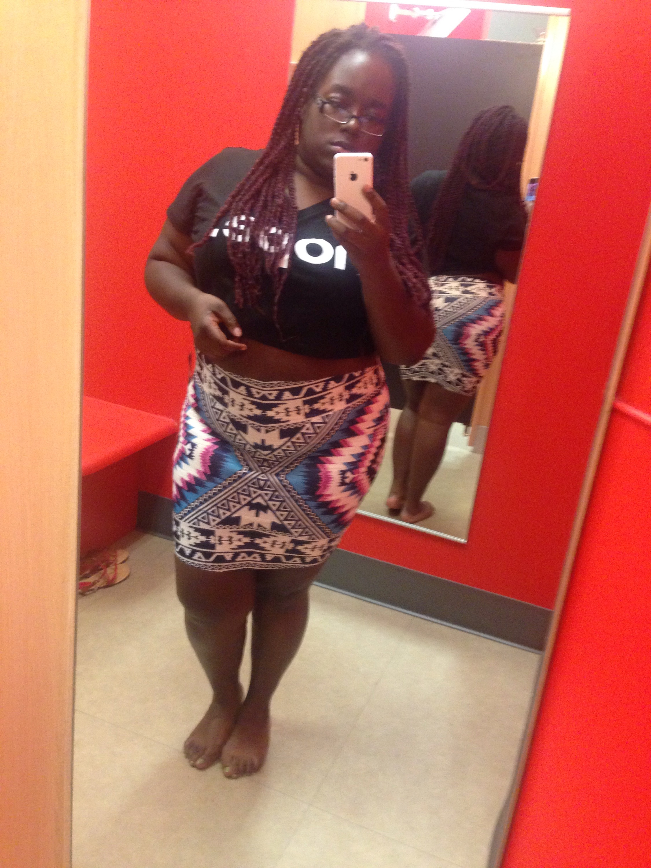 After taking a dip in the pool yesterday my boyfriend and I took a trip to Target. Every time we go I can’t help but try on the clothes in the women’s section, especially in the AVA&VIV section. Yesterday I tried on a vest, & three skirts! If I could have bought each piece I would have. Target never fails my expectations. Everything I tried on worked with my nope crop top from Rebdolls. That made it harder to let go. I’m a skirt girl. Trust me you will see as time goes on lol.