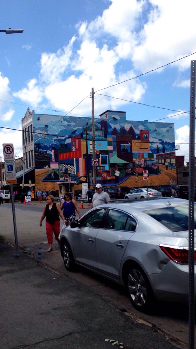 Yesterday was the day where I really got to see Pittsburgh. I caught a ride in the hotel shuttle to the Strip District which is a mile long inside of industrial and warehouse spaces that house many vendors, fresh food markets, and restaurants. I started walking from 17th street to 21st street and found this restaurant called Bella Notte. It was a small Italian restaurant that served pizza, pasta, and so much more. I really wanted some pizza, but with being lactose intolerant I really didn’t want to suffer (I didn’t have any of my pills on me). So instead I took my waiters advice and got the chicken caesar wrap. It was delicious with the side of chips and the strawberry daiquiri. I then thought that walking back to the hotel was the best idea, but it wasn’t lol. I’ll walk anywhere if need be but the jeans that I wore were not the right pants to do any type of walking in. I managed to walk from the Strip through the Cultural District to the hotel, which is right up the street from the hotel.