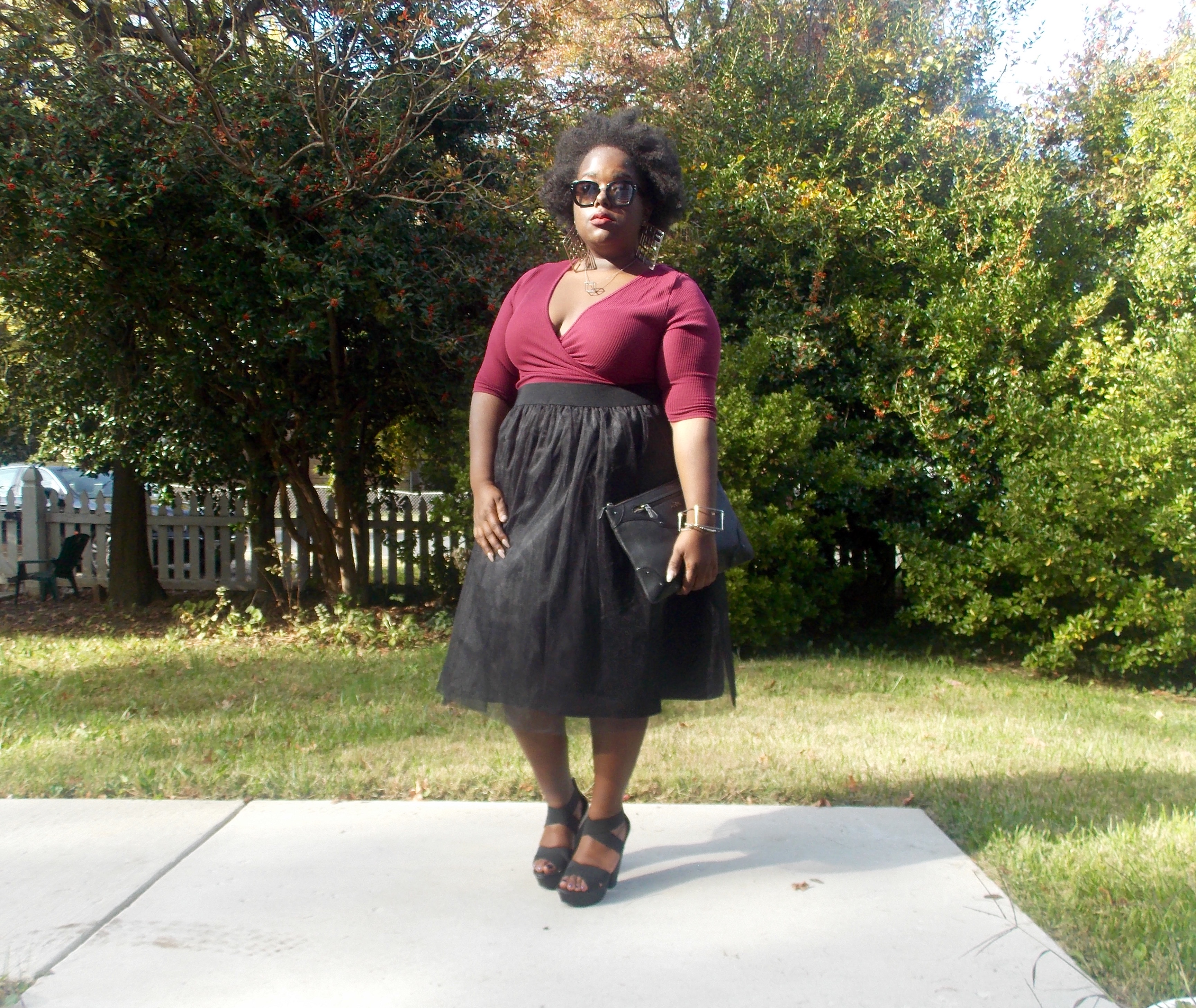 I’ve always, I mean always wanted a tulle skirt. I’ve seen so many people on social media with one on and I felt like I needed one because they are just too cute. I’ve owned a few when I was younger when I was a ballerina, but this is now. It took me a while to find one in my size and in the budget, but my hopes and dreams of owning one came true when we got some in at work(Fashion To Figure.) When I saw it I grabbed it and made sure I got it because they would fly off the rack.