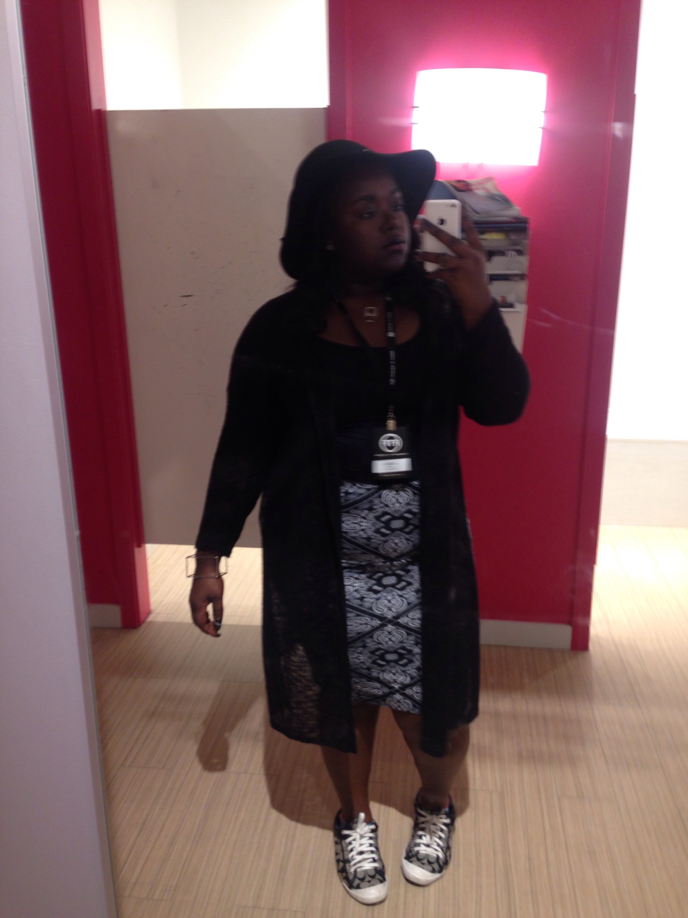 I’ve been working like crazy and haven’t been able to post like I wanted to in the past 3 days. But no worries here is a little recap. On Wednesday I felt so good. I managed to not blog about the day at all! I felt like my hair was on point when I put a hat on. (The leave out at top of my head just does not want to blend or stay straight) Oh the joys of the natural life. Might I add my outfit was on point! I all around felt really good. Luckily while I was at work I managed to get a few pictures of what I wore.