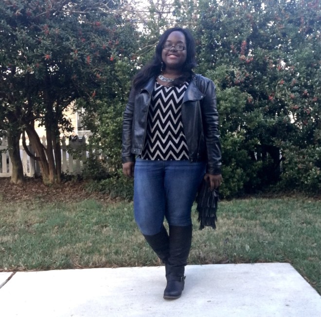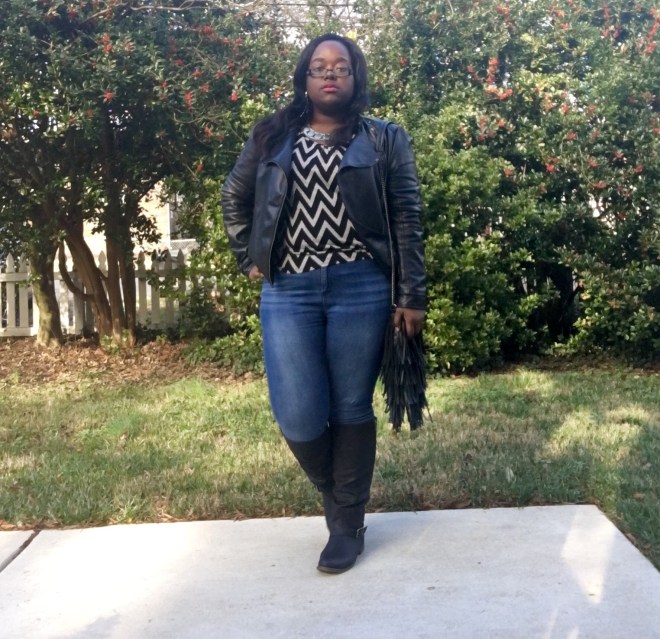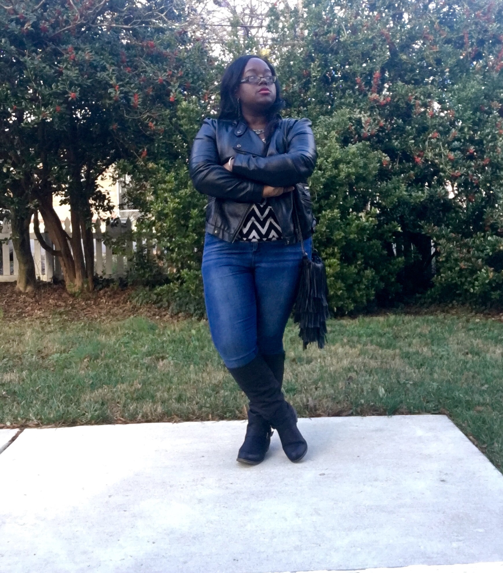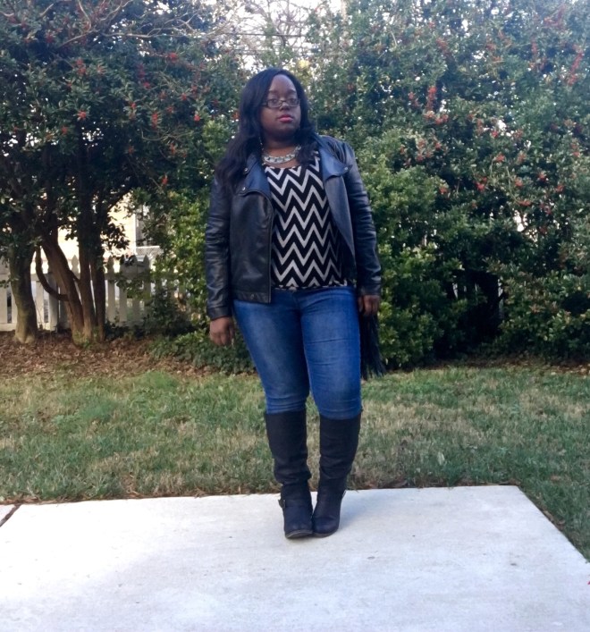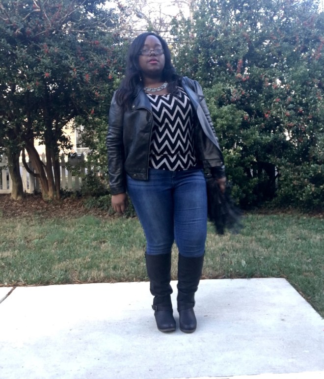 Today, it actually feels like winter. Those last few odd warm days were very surprising. I definitely was bundled up because I have no time to be sick. This look is no different. (Even though I have no scarf or hat on in the pictures, I will have them on as I am out and about today. Remember I have no time to be sick.)This sweater may seem thin, but it is so warm. Wearing the leather jacket is just the right touch of extra warmth I am looking for in today’s weather.