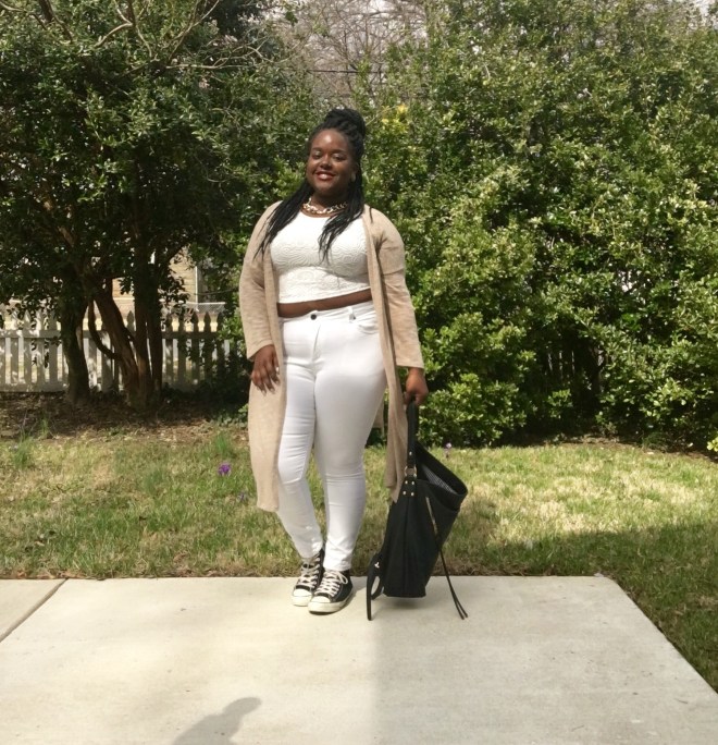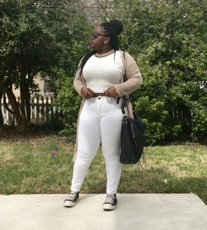 All white screams warm weather! Pairing it with tan sets it off! I won’t be surprised if I see other people in all white today as well. It’s just the classic go to look especially when it feels this good outside.