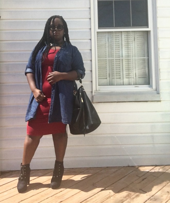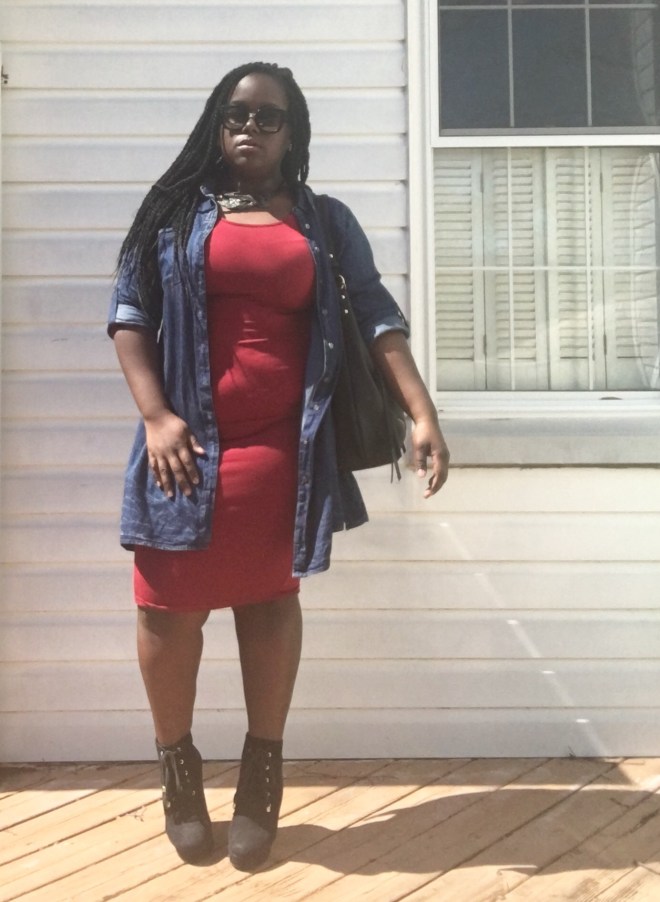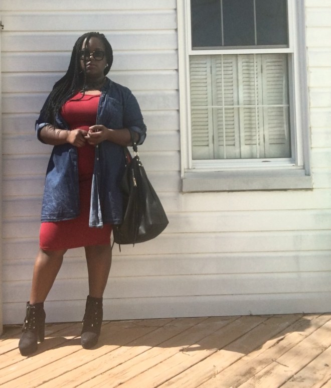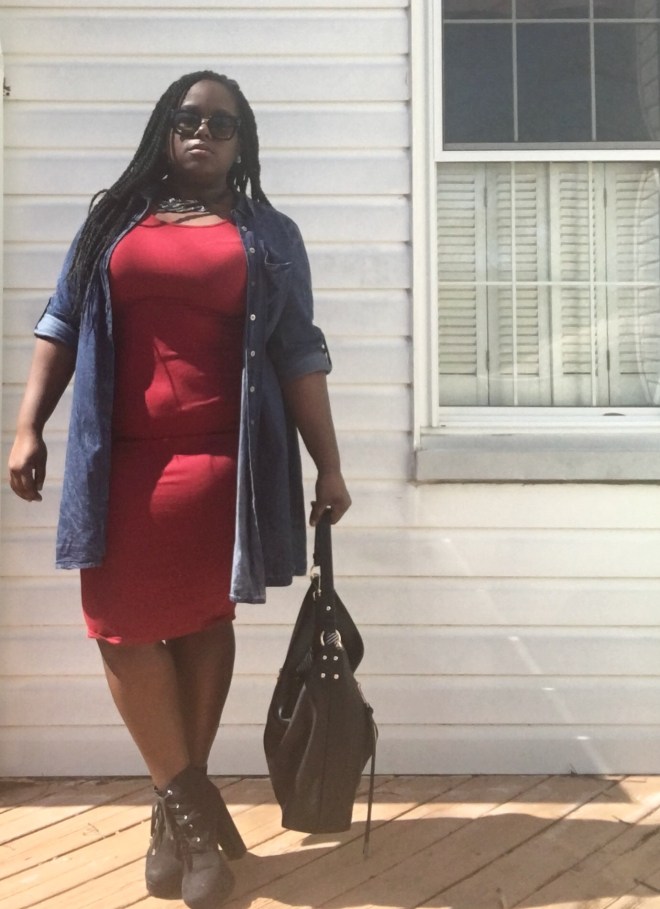 Thank God the sun is out. I don’t think I could take it if it was cloudy out. The only thing making it cool out is the breeze. So why not throw on a cardigan or anything that can be used as a jacket! Instead of a leather jacket or a coat, I decided to wear the jean button down tunic. Sometimes I wear it buttoned up, but since I’m wearing it as a cardigan it’s perfect unbuttoned.