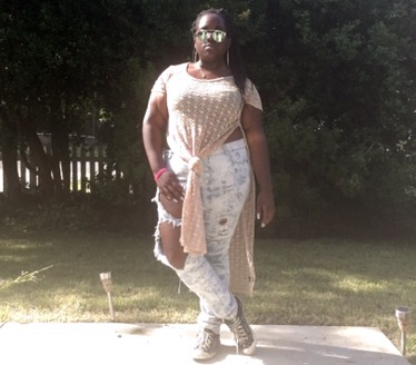 The two slit see through shirt is an amazing top to wear with the jeans. You can tie a knot in the front like I did or leave it hanging. Keep it cute and comfy with some tennis shoes or dress it up with a pair of pumps on a night out on the town.