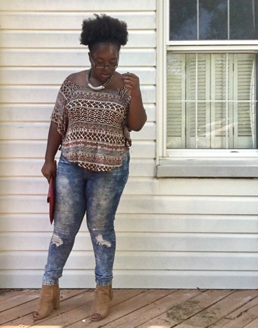 Brown and tan have to be my favorite colors to wear during the fall. They are the base for most of my looks when pairing warm tones. It not only brings the look together, but it makes those warm colors you would wear with them pop! Carrying the burgundy clutch pops by itself, but also brings out the hints of orange in the top.
