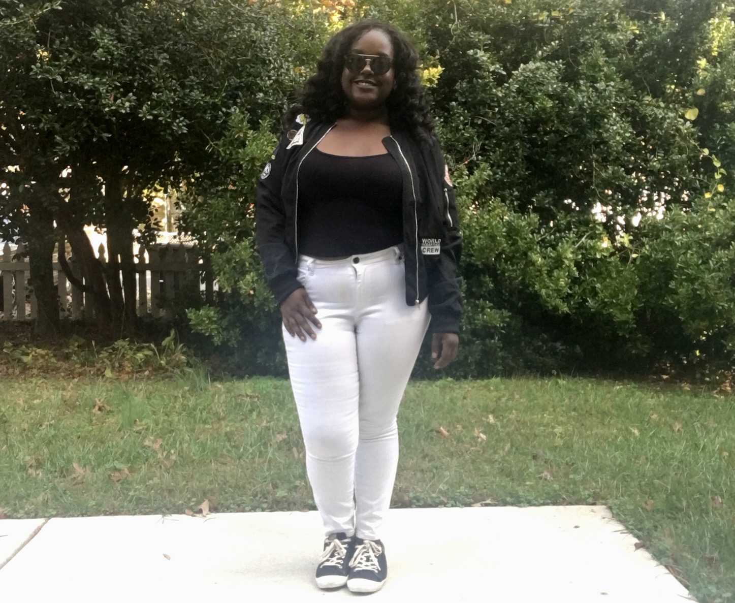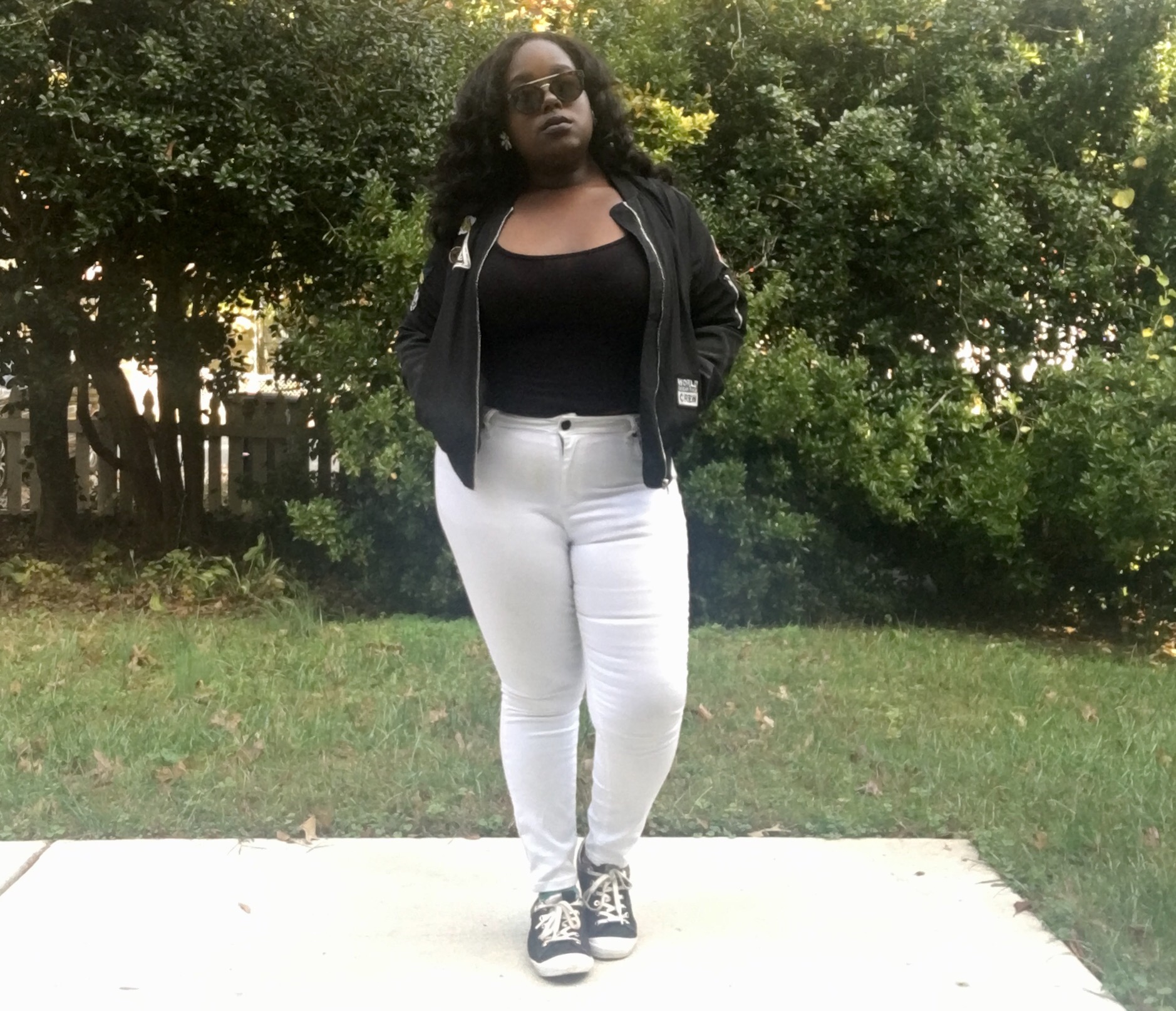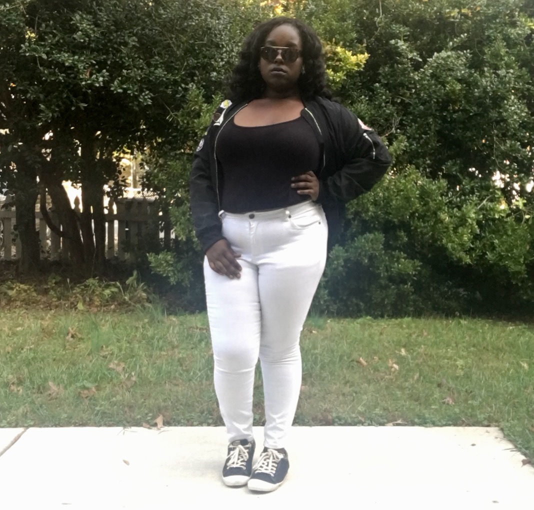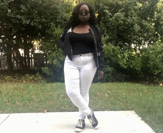 So today I did what I could and made it so I can be as cool as possible. Bomber jacket, white pants, black top, and my Ol faithful coach shoes. Can’t go wrong with that!