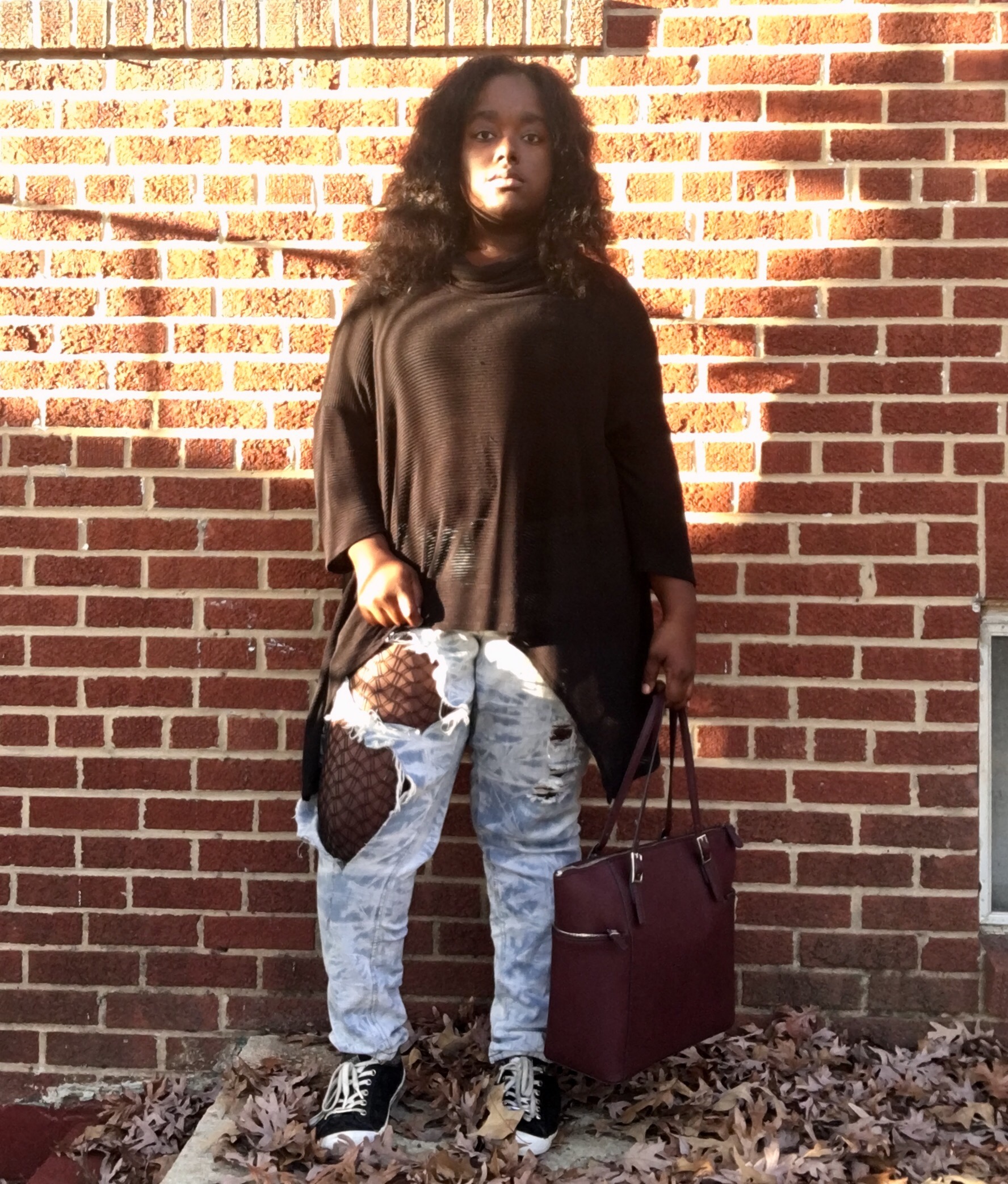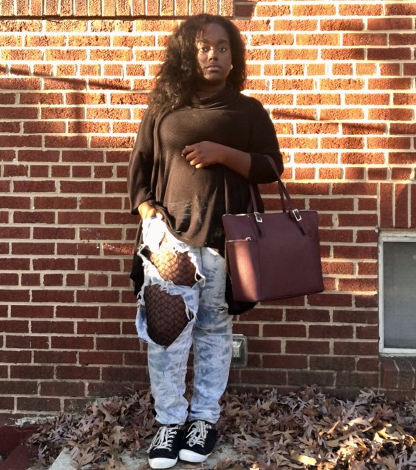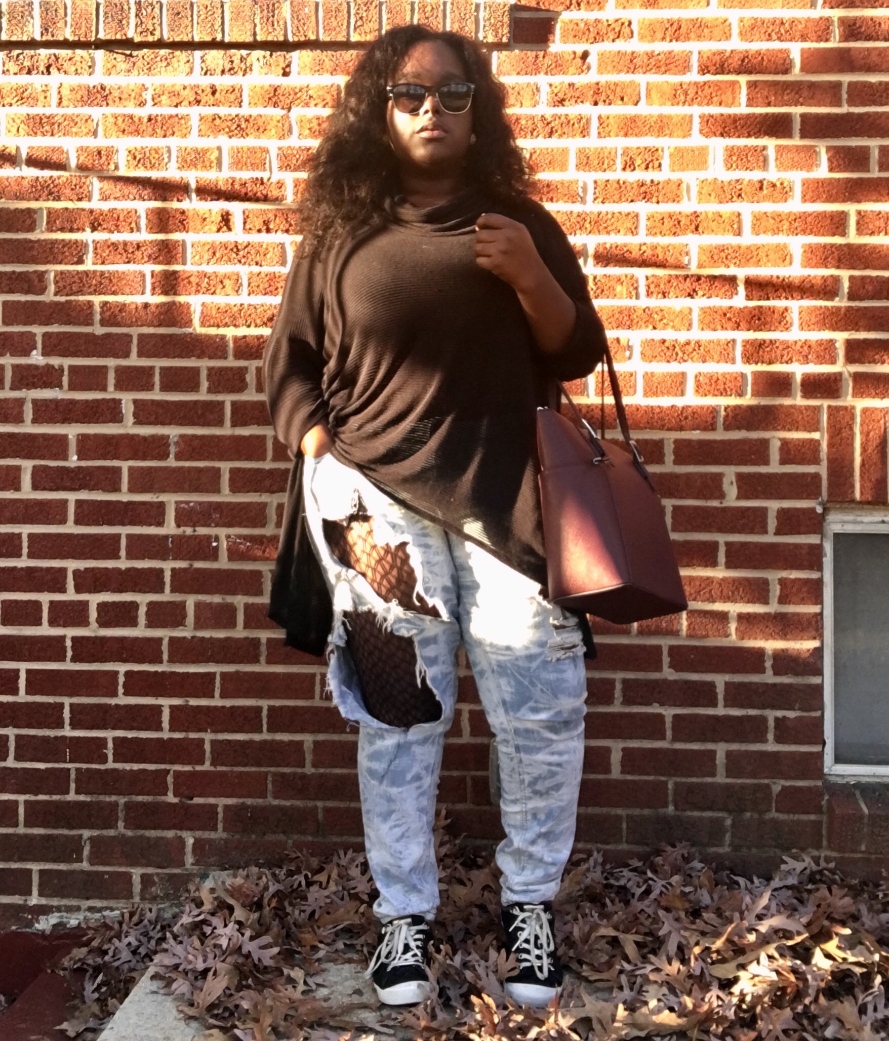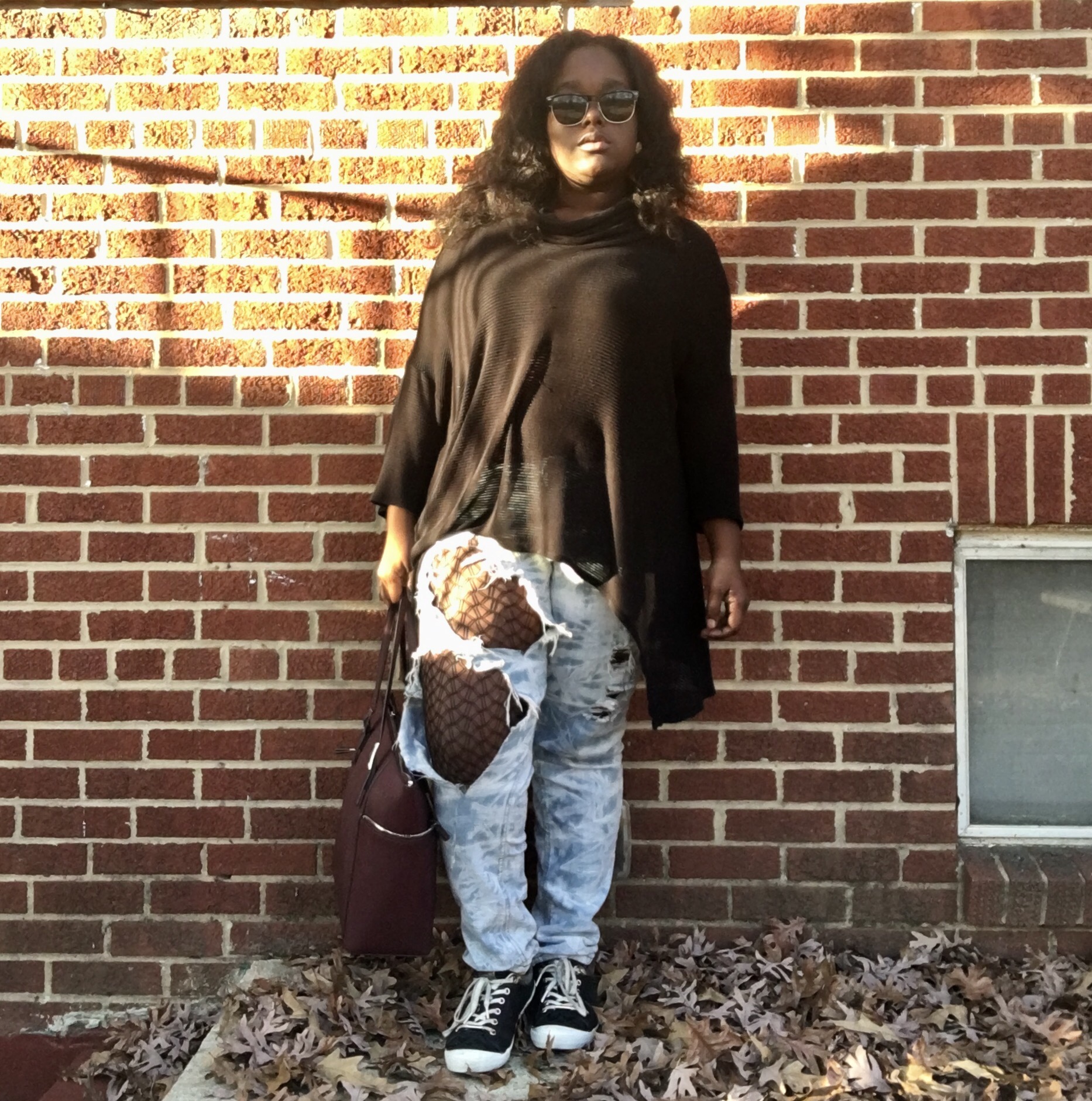 I am one who isn’t afraid of showing a lil thigh or skin at all. When it comes to these jeans the are hands down my favorite distressed pair I own. Instead of going out with nothing under my jeans and having my legs cold, I thought to wear tights, but not any tights. DESIGNED TIGHTS! They make such a difference & can complete the look & today was the day for it.