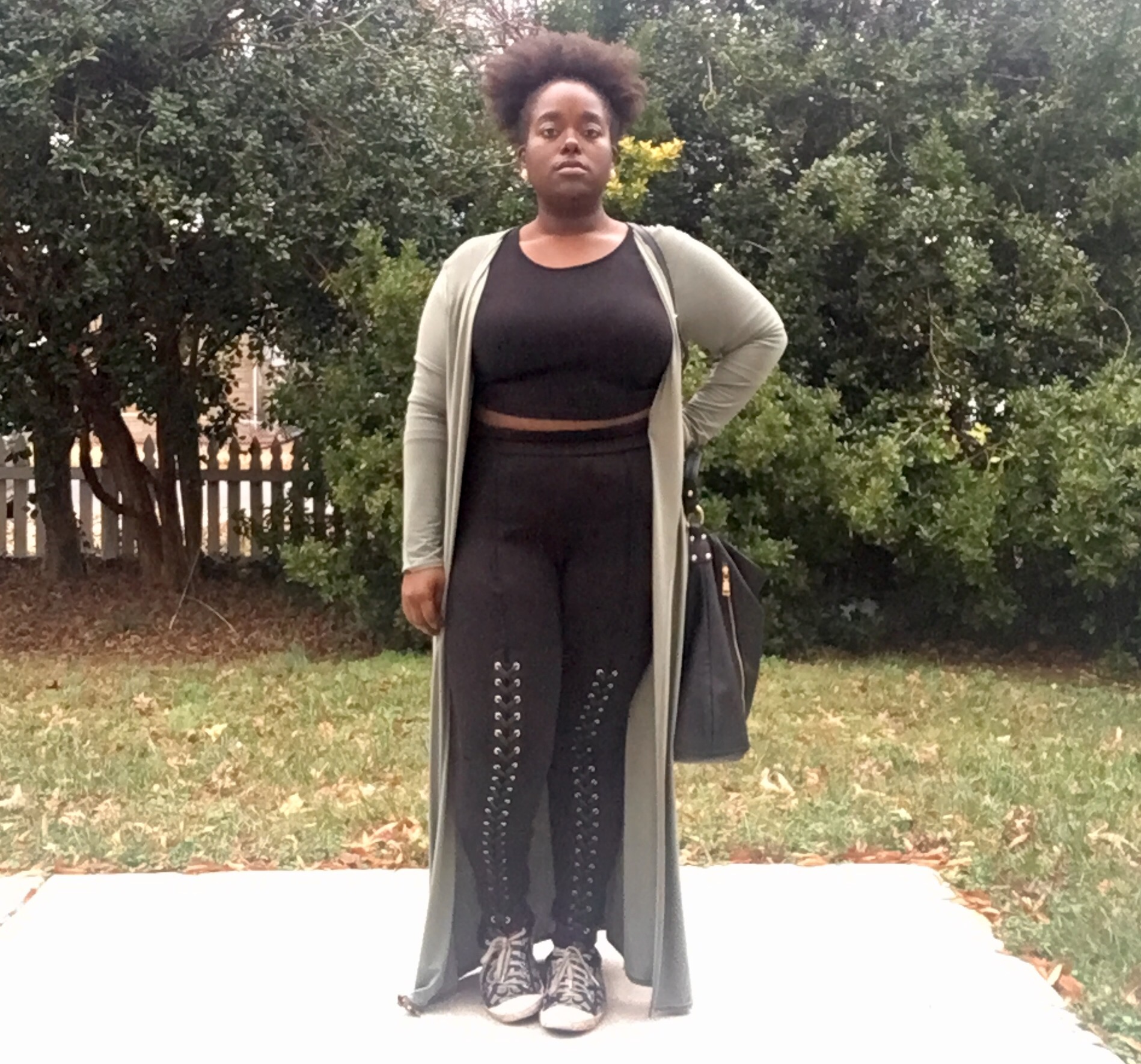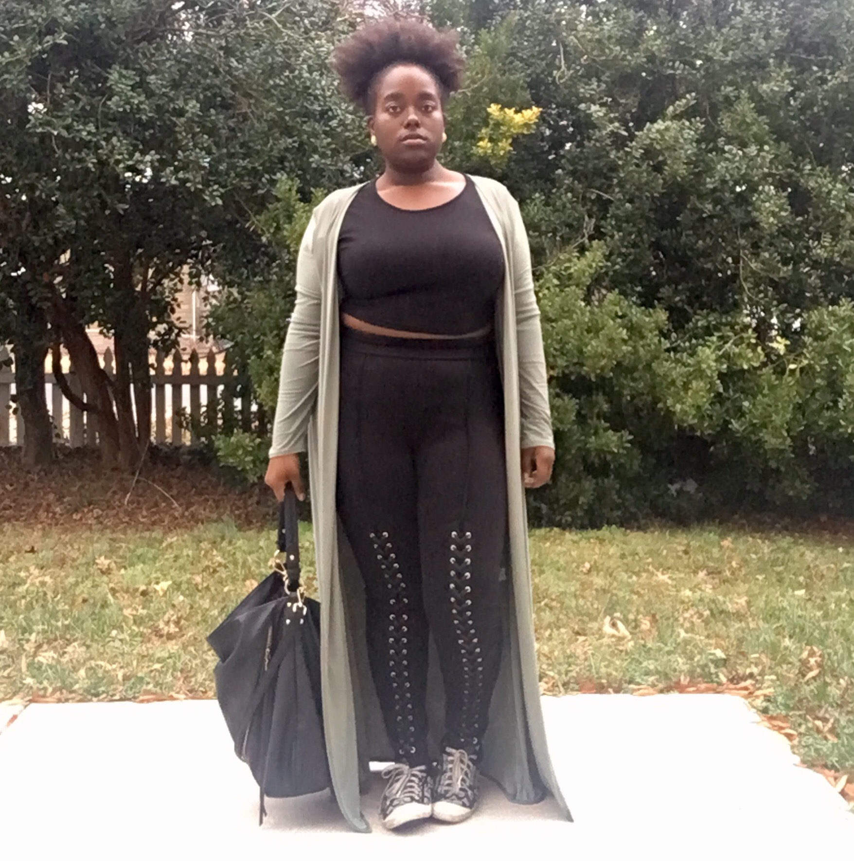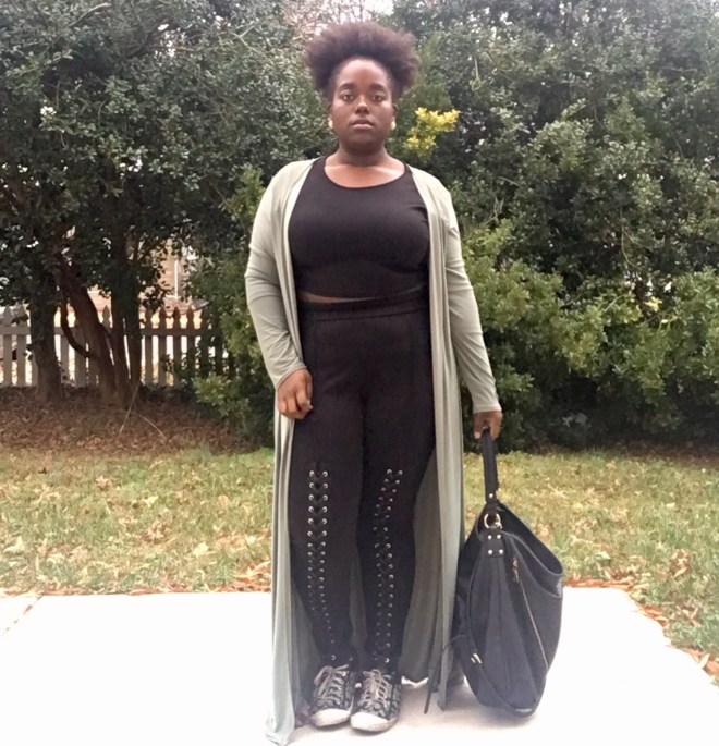 Also what I love more about this look is the pants! They are extremely comfortable. They aren’t too big in the waist or the legs. It snugs on you and doesn’t let you go. What makes them even better is the lace on the legs. It gives the look of lace up thigh high boots without the pressure of having to lace them yourself.