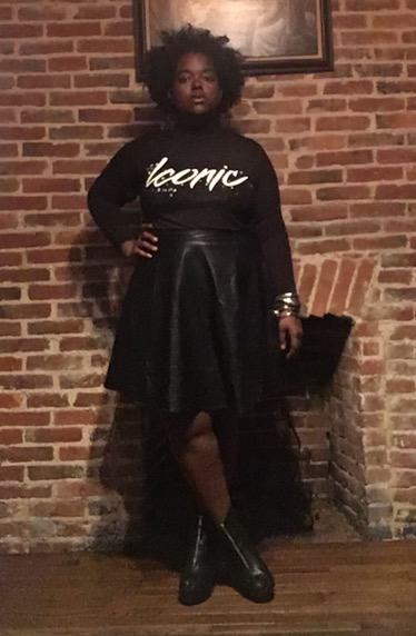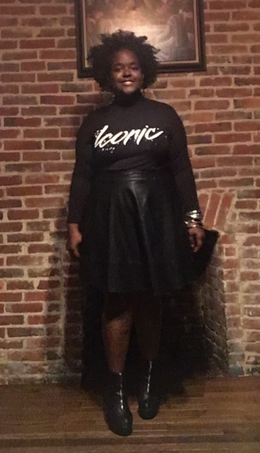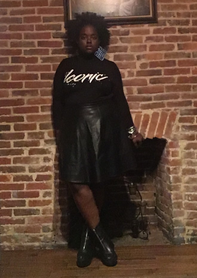 I knew that styling this look with a graphic tshirt would be the way to go. The leather skirt gives an edgy aspect to the look. So you can say I was going for a edgy, but still me look. You can pair a leather skirt with any top and make it for you.
