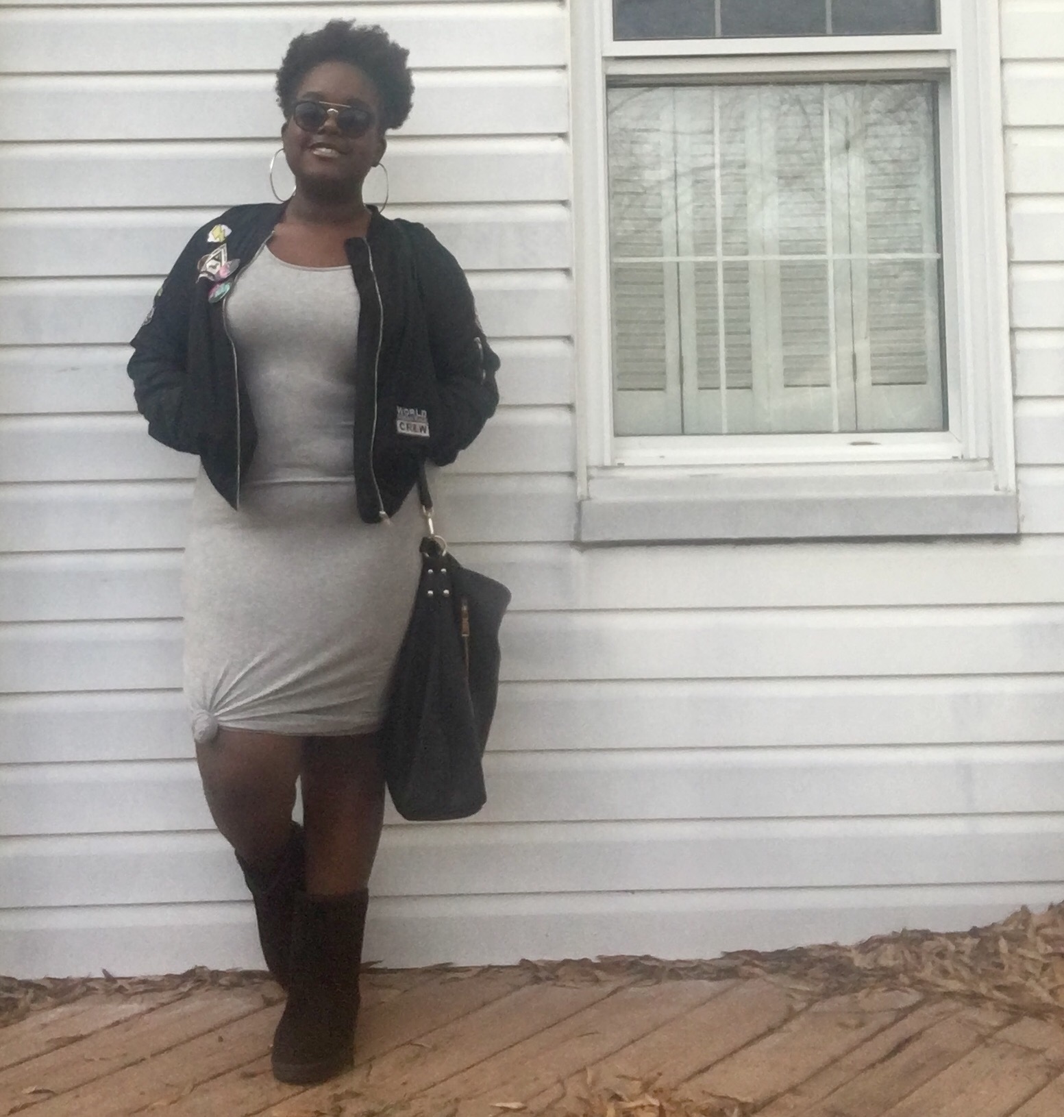 I absolutely adore midis because they are versatile! On many occasions I have worn midis to events for work or just to chill & go. Since the dress is plain, it’s all about how & what you accessorize the dress with. Per usual I decided to go for the cool, calm, and collected look since I was on moves that day. The bomber jacket definitely is a plus in this look because of the detail. The patches and the buttons that I have added to the jacket give the jacket & look that umph.