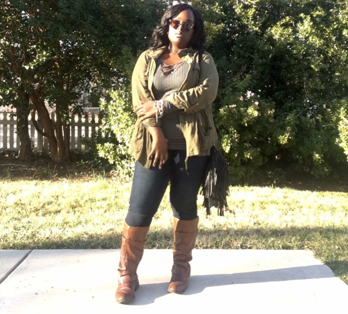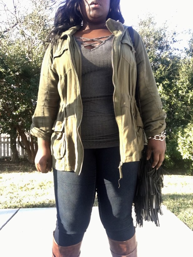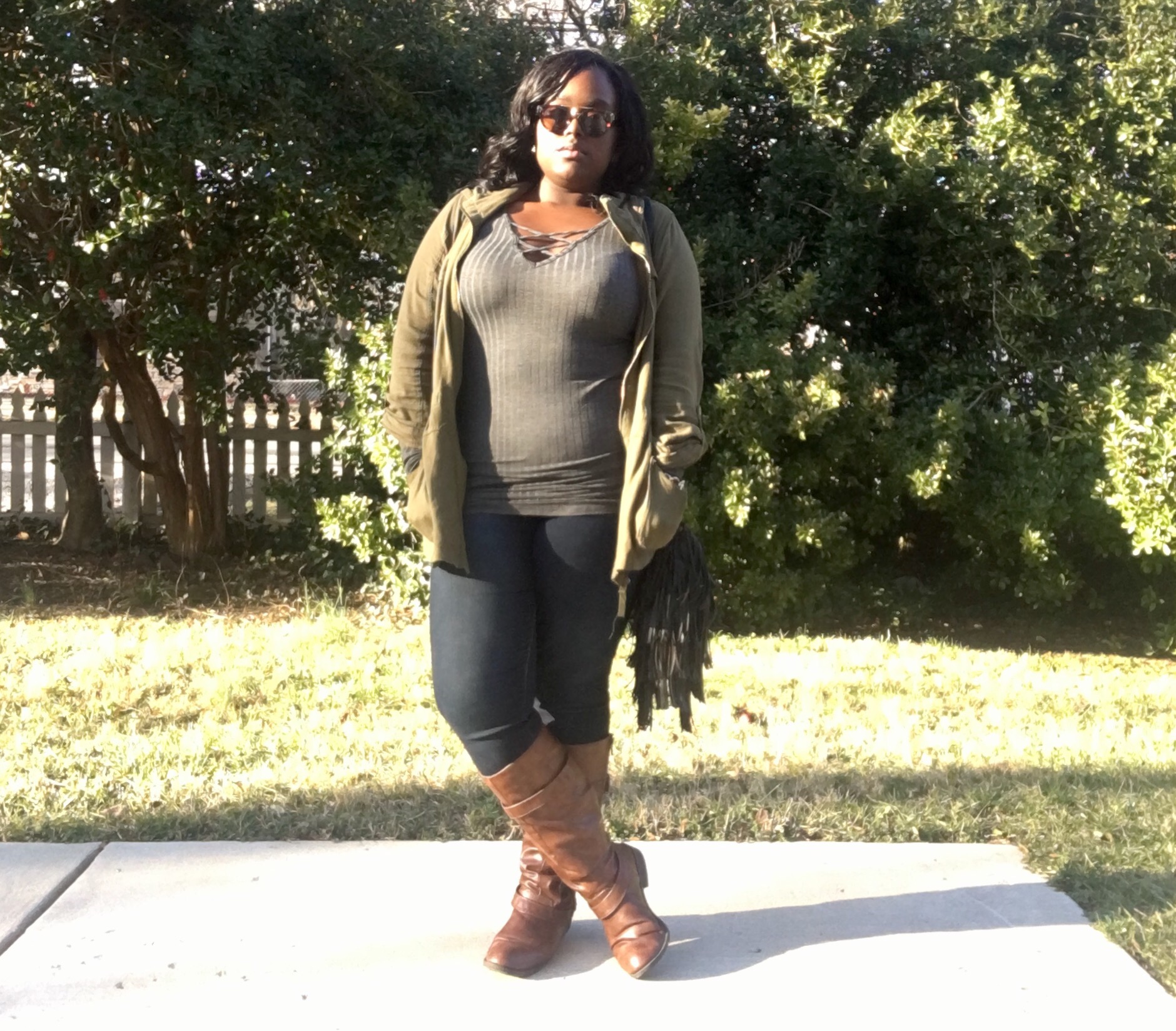 Olive Green, Grey, & Brown. That combo will never get old. It’s neutral and works at any time, occasion, and season. I’m too ready for the warm weather & that day it was perfect. The crisscross dress, yessss it’s a dress! It was a steal just like the dress I wore for the Jazmine Sullivan concert. It was only $8.99 😱. Since it’s still too cold to wear it as a dress it was perfect to wear as a top. Throw on some leggings or jeggings like I did, and finesse!! Hopefully, the weather will come back through and bless us again. It was just a sneak peek for what’s to come. Are you ready for the warm weather like me? I know I can’t be the only one.