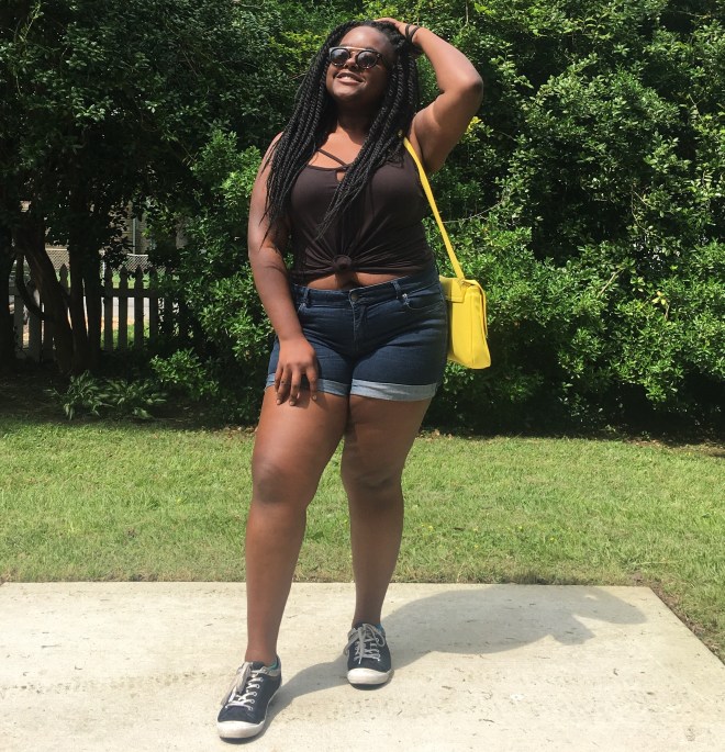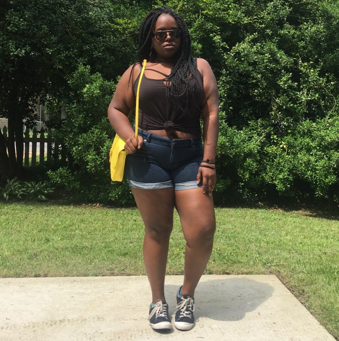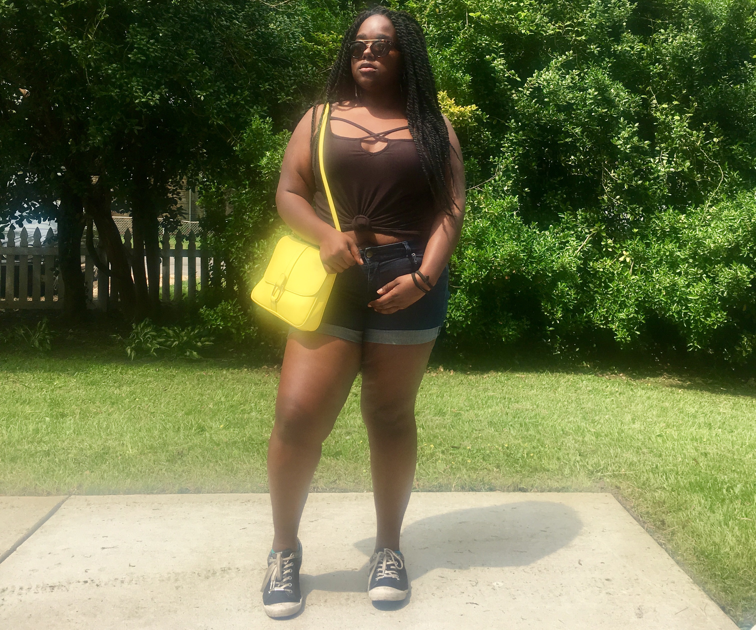 Who said a simple tank top, shorts, and a bright accessory can’t be popping? Nobody, and if they did clearly I’m not listening 💪🏾. Sometimes going with the most basic look can be THE look. I’ve realized that over the years that trying to stay up with the trends and fitting in is extremely tiring. I do & wear what I want, whenever I want. If I feel good in it, I’m wearing it. No if ands or buts about it.