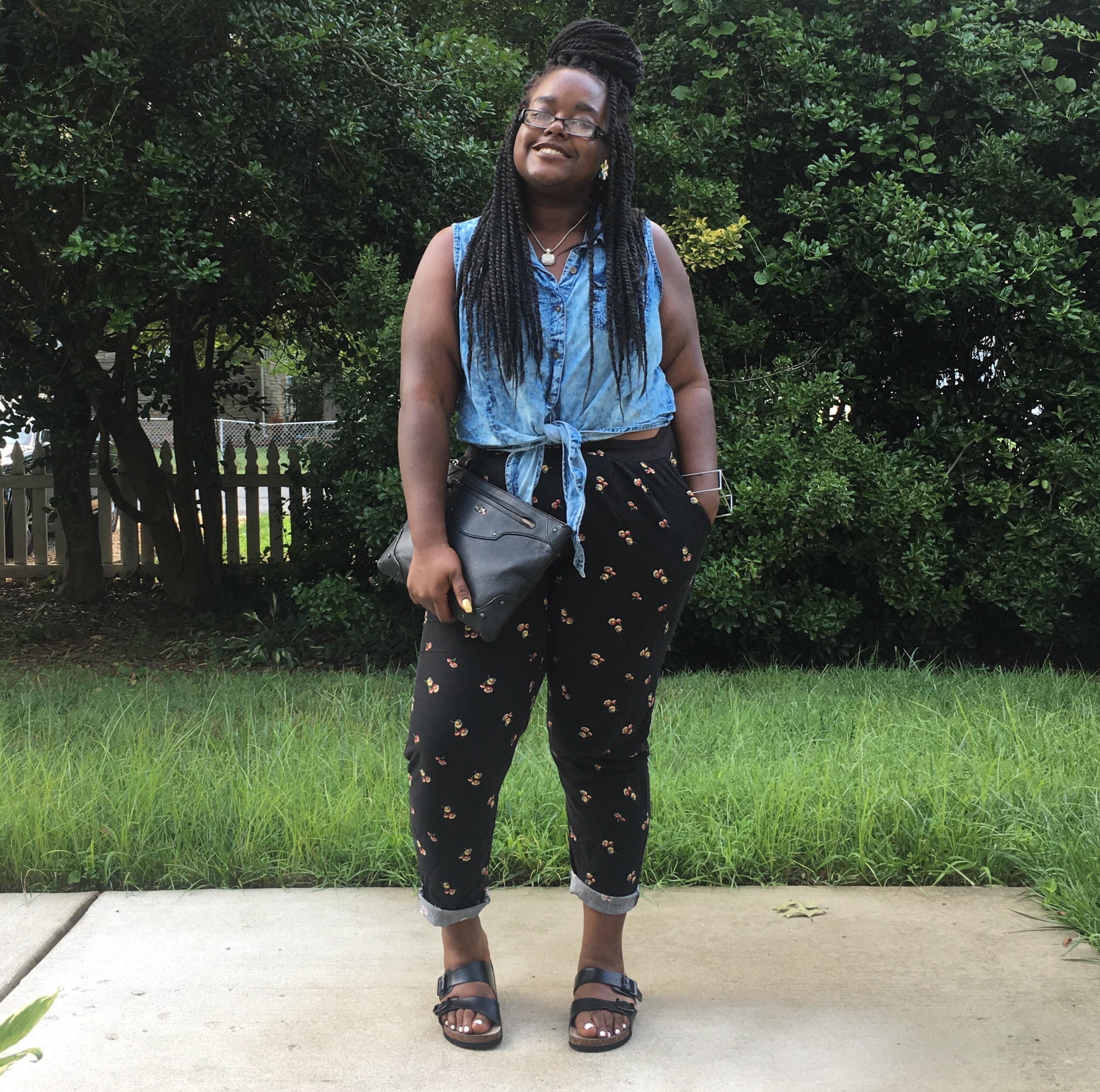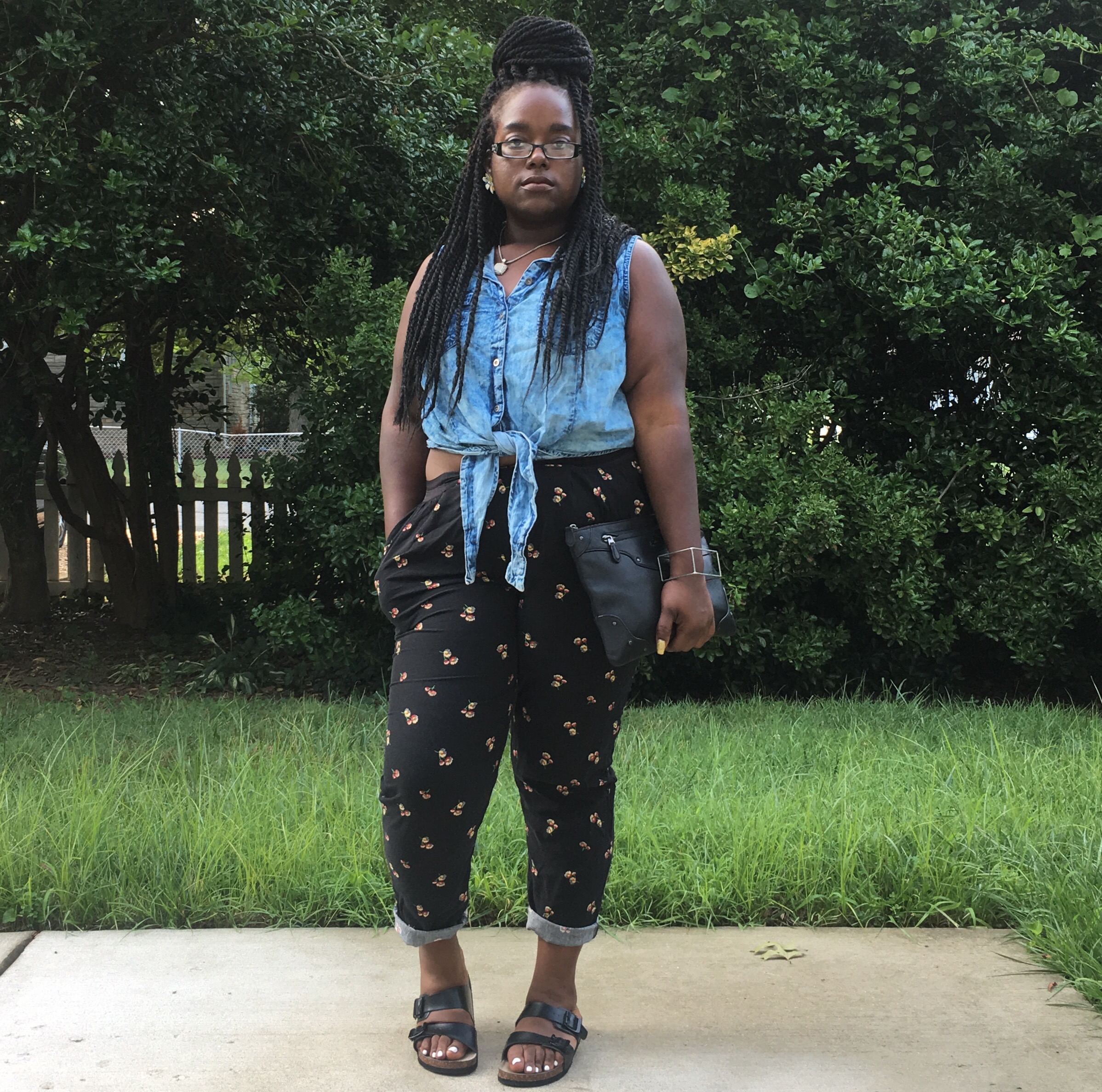 Ultimately, pants were my next option. Now these pants are a gem! They are lightweight, has small floral detail, and purchased at a thirft store. I don’t remember exactly how much they were, but they definitely weren’t more than $10.