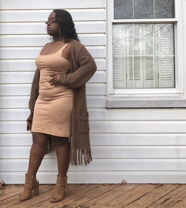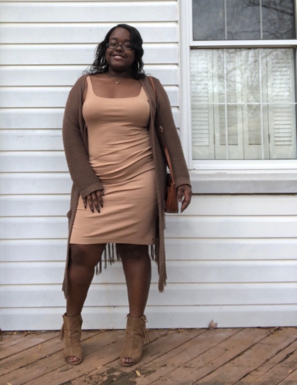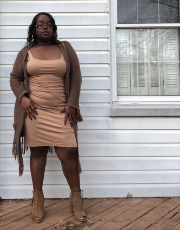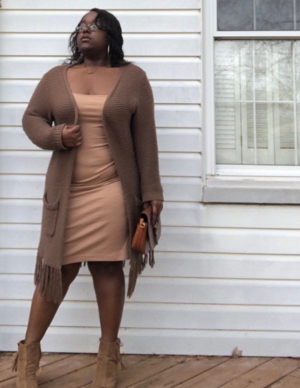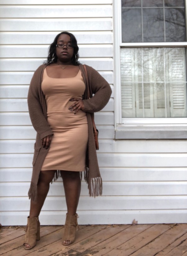 Wearing different shades of one color really can work, it’s just all about how you wear them. This dress has been worn on many occasions & this definitely won’t be the last. I’ve worn this dress with jackets and without one. Surprisingly I had this dress on all day, no jacket or nothing because it was extremely nice that day, but the moment the weather decided to switch up on me during the day, I grabbed the cardigan.