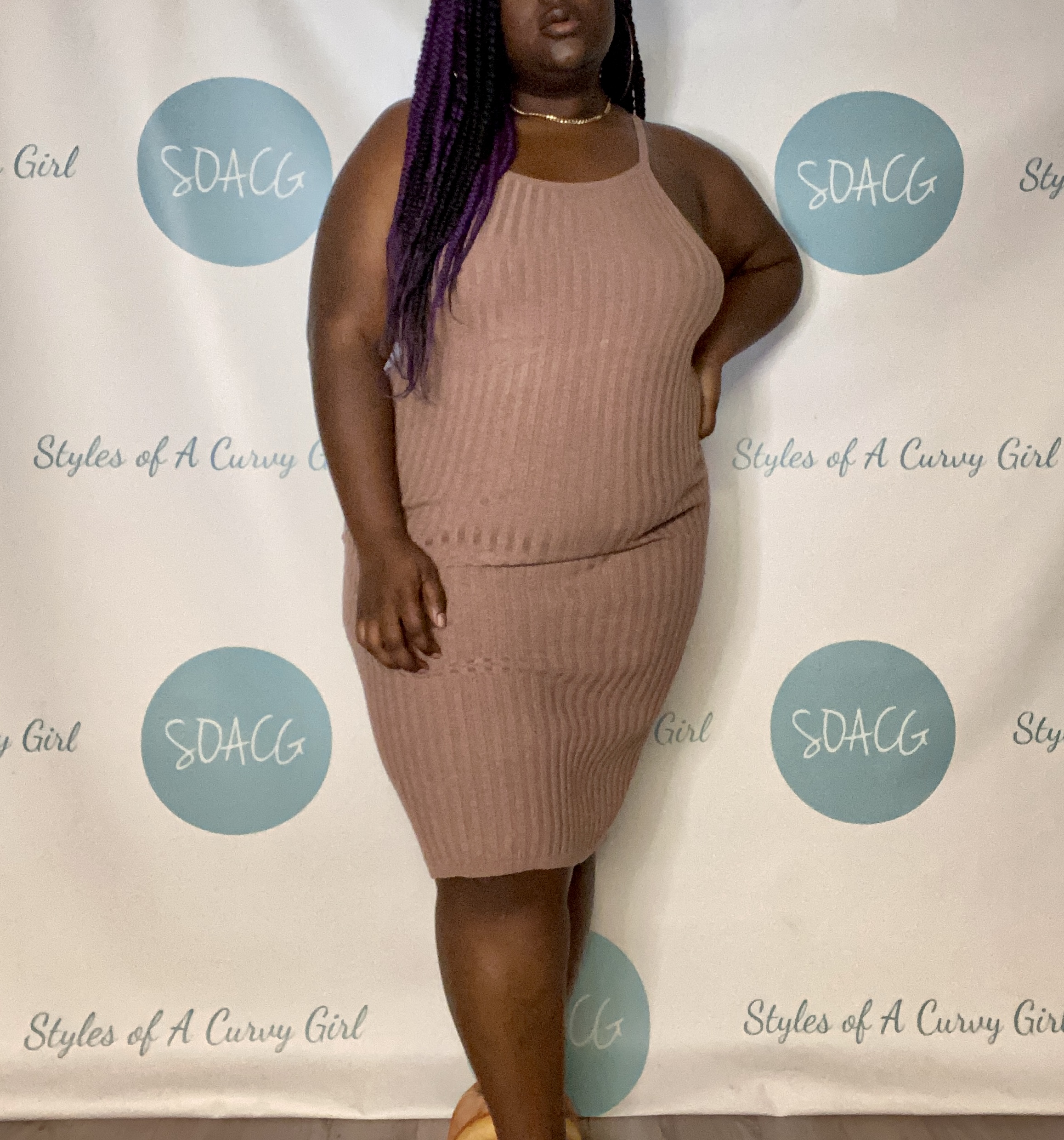 Sunday, my friend Nina helped with the look. She told me to wear whatever I would put her in. That made it easy for me because I love Nina in dresses, so I wore my ribbed knit pink dress. It’s the perfect “I’m not leaving the house, but I have to I’ll still look good” kind of vibe. I’ve worn sandals and booties with this dress on many occasions, but that wasn’t necessary this time around. My loafers were the perfect shoes, and Nina approved.