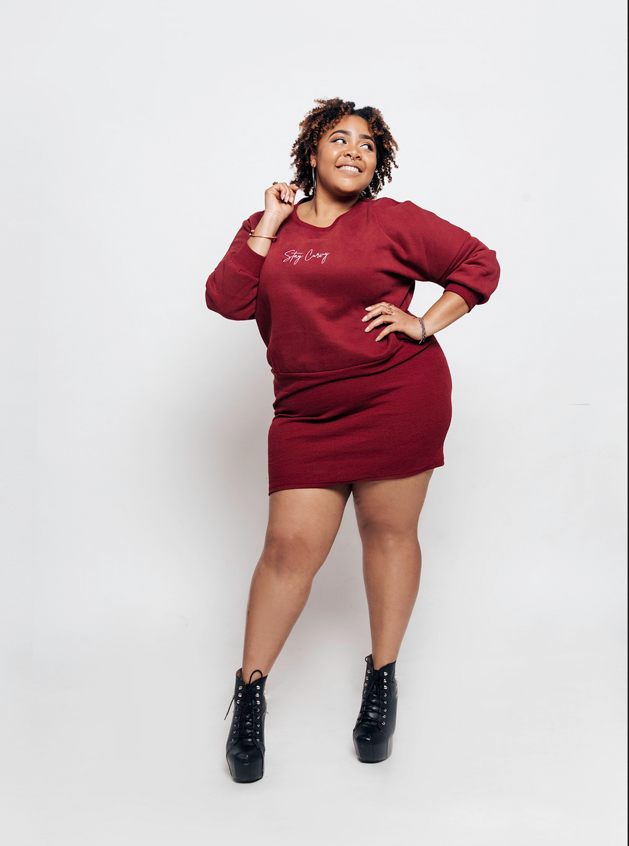 Now if you want to get dressed for a table for two or yourself then Stay Curvy is it! dress it up with some cute heels (for pictures of course) or keep it close to the floor in your favorite slippers. You can even wear it as a crewneck by flipping the bottom of the dress up and wear a latex skirt with it to add some oomph.