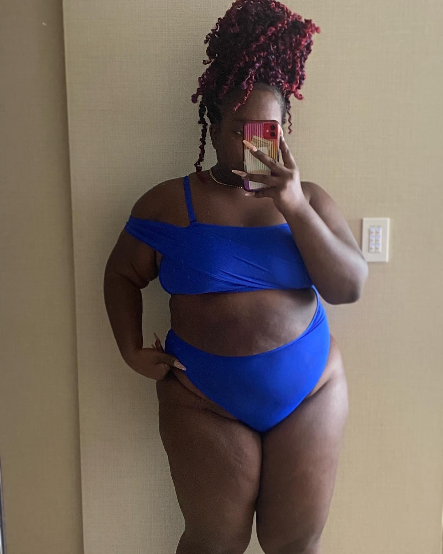 Of course, with them being my first bikinis, baby Jonice was not where we are today. I wanted to feel good, but not show off too much. In the end, I loved how I felt in both swimsuits. What I love the most about these bikinis are that they are actually cute and not the cheetah print/flower and stripes combo some designs love to throw on anything over an XL. It gave me to will and desire to expand my swimwear collection to what it is today. I wore my FIRST itsy bitsy teenie weeny not so much polka dot bikini last August. I got it for my Vegas trip in 2021 but didn’t wear it. Call it what you want, but I was not ready to go all out. It wasn’t all bad because I was able to wear my cut-out swimsuit.