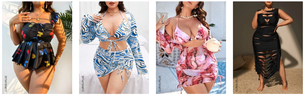 Of course, there are also more classic options for plus size swimwear, such as a tankini or swim dress. You can’t forget about the coverups! They can easily turn the entire swimsuit into a lewk which would be perfect for a day at the beach or poolside.