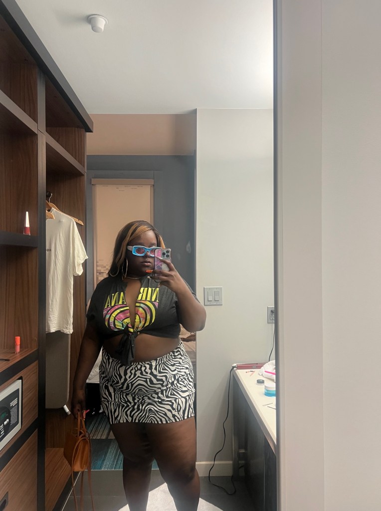 It all started back in May when I made a quick getaway to Houston. Now, this wasn’t a “let’s explore the city” trip, so I kept it low-key in swimsuits and sweats for the most part. BUT, I did pull out a fit that I’m still obsessing over: a graphic tee paired with a zebra mini skirt. Both pieces have been staples in my closet, but I never thought to put them together.
