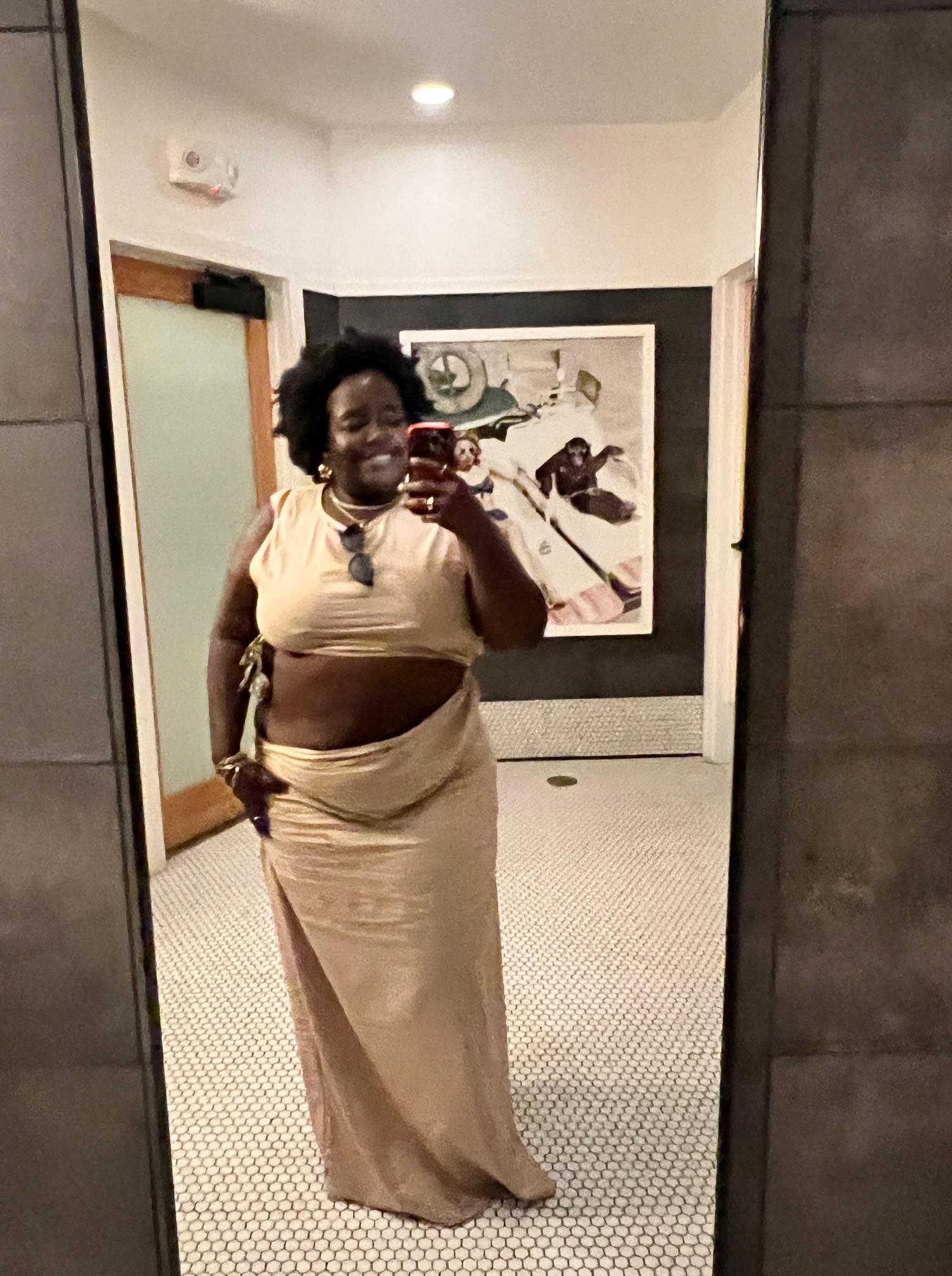 I tend to make trips as my time to experiment with new combos, and this one was a winner. The way I turned heads for those three seconds I was outside? Immaculate. Even caught myself in a window reflection like, “Okay, girl!”