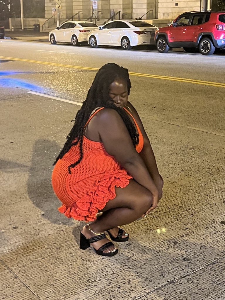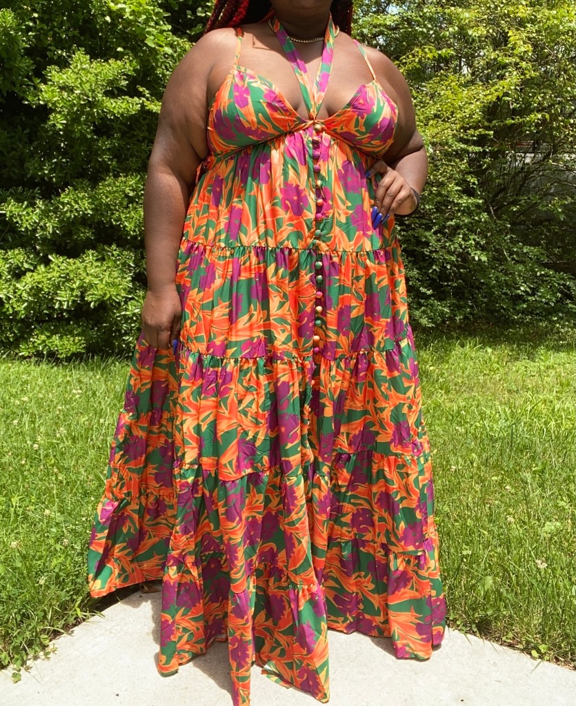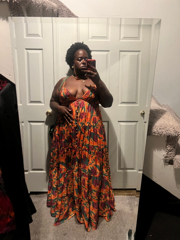 That dress sold out the quickest, and whenever I wear her, I feel like the baddest, best-dressed person in any room. It’s the way she holds my chest and shows it off. The way she moves — like I’m floating. The print was bright, bold, and not your average floral. She makes me feel feminine and unforgettable.