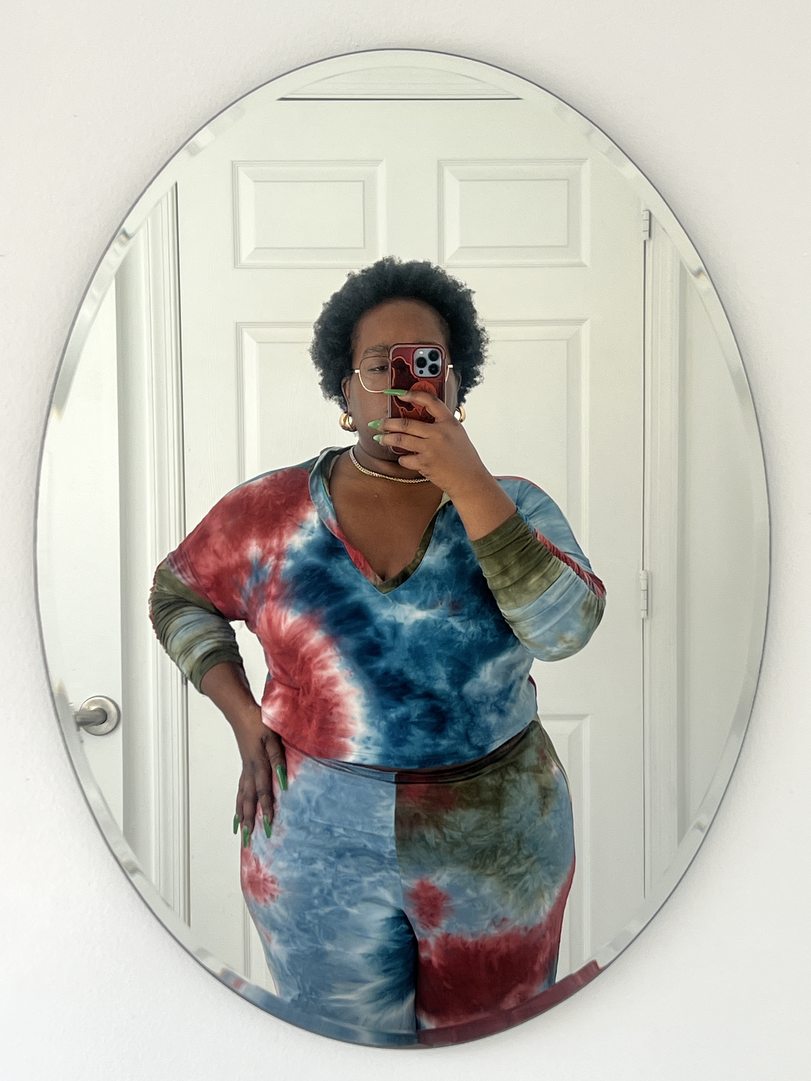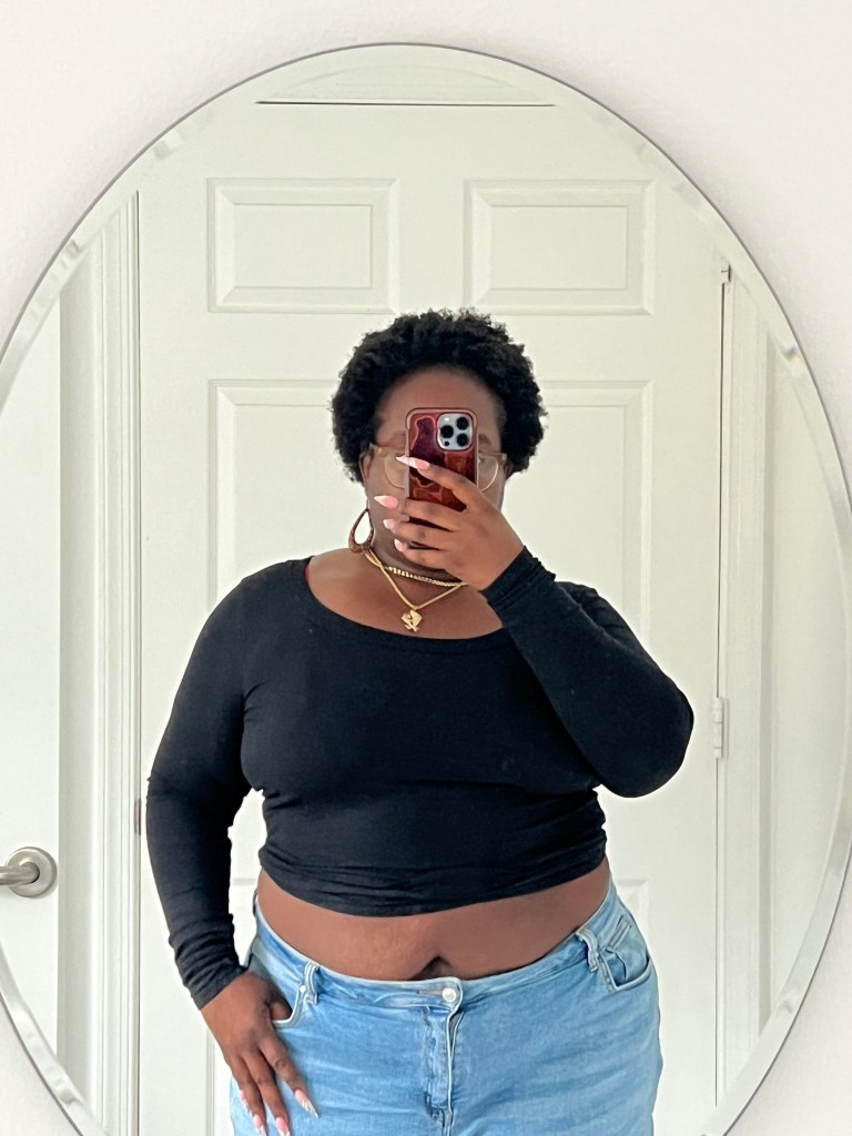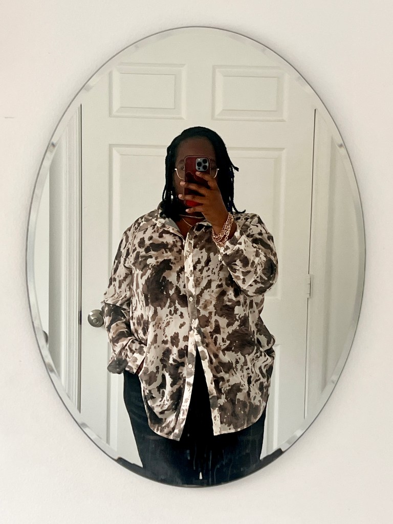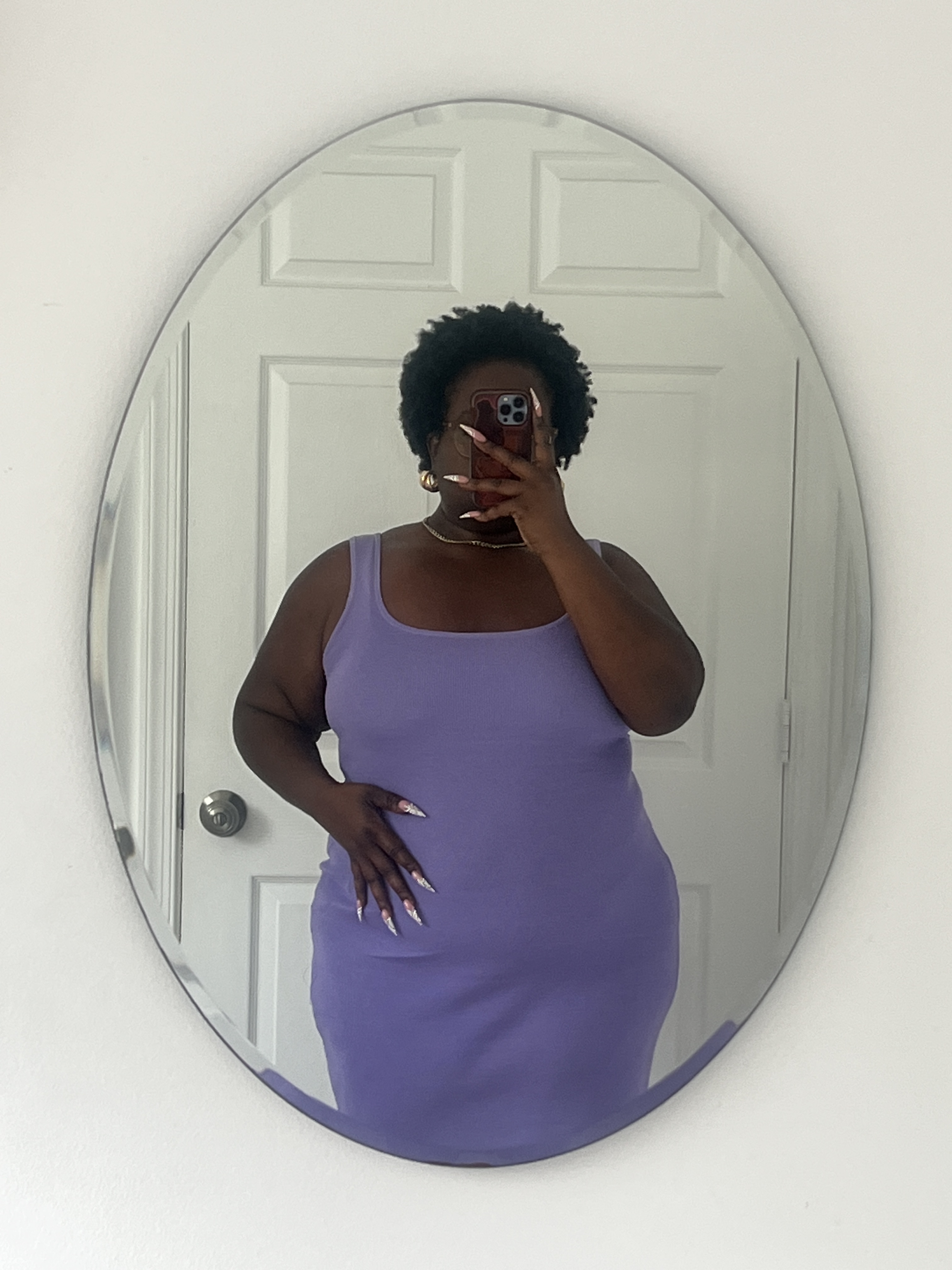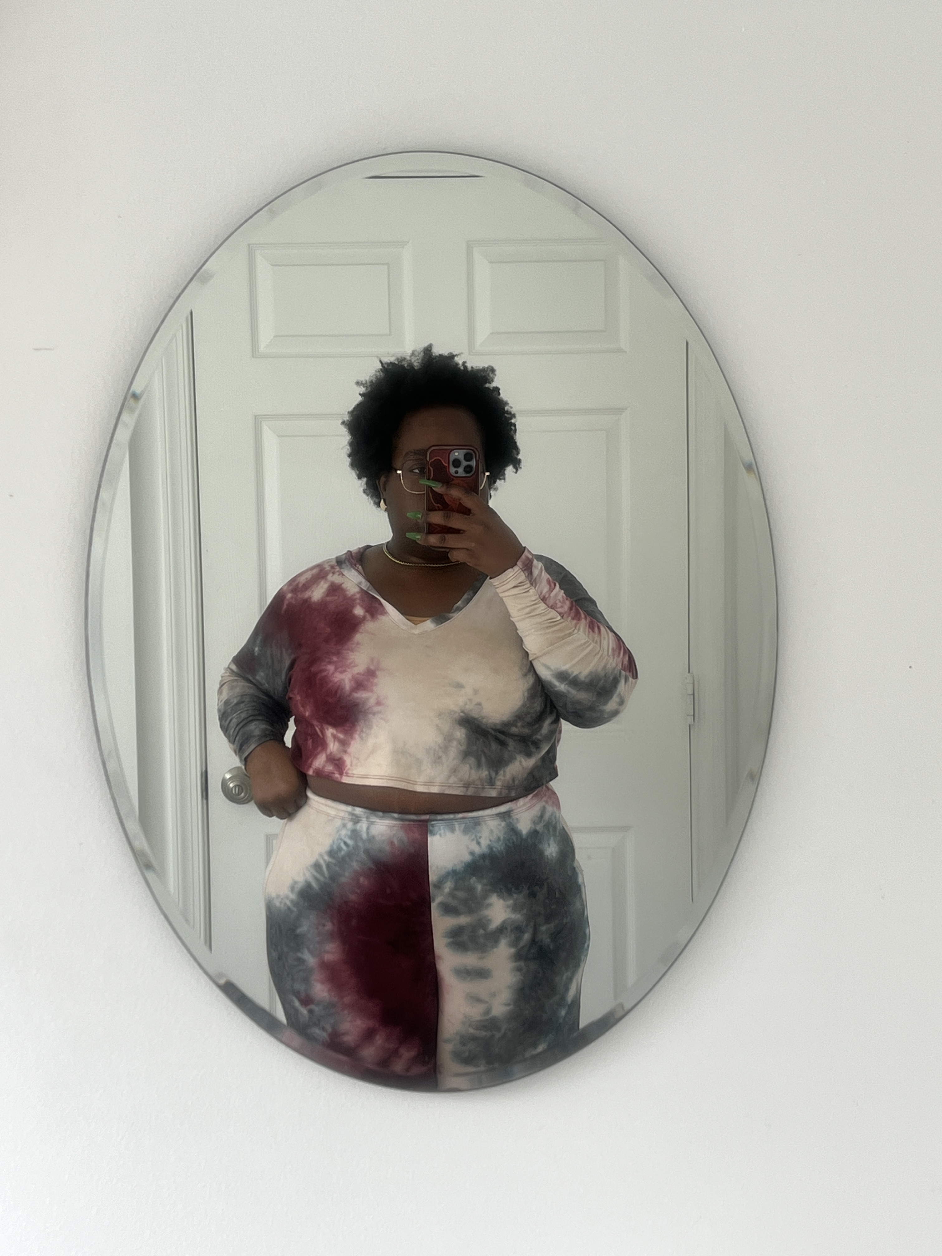 It took me a minute to find the right spot to capture each look. At first it was in the mirror in the weight room, but then they converted that room into another office space. I then took my talents back to the office, but I didn’t want everybody in my business. One day I was doing my rounds, and I went into our community room and completely forgot about the bathroom in there. It was enough space, perfect lighting and a mirror that caught my fit just right. I even could get a quick video done with a few turns and lookbacks. Once I started taking my pics in there I realized that I was getting more engagement from my followers and even gaining a few new babes. That let me know I was on the right track.