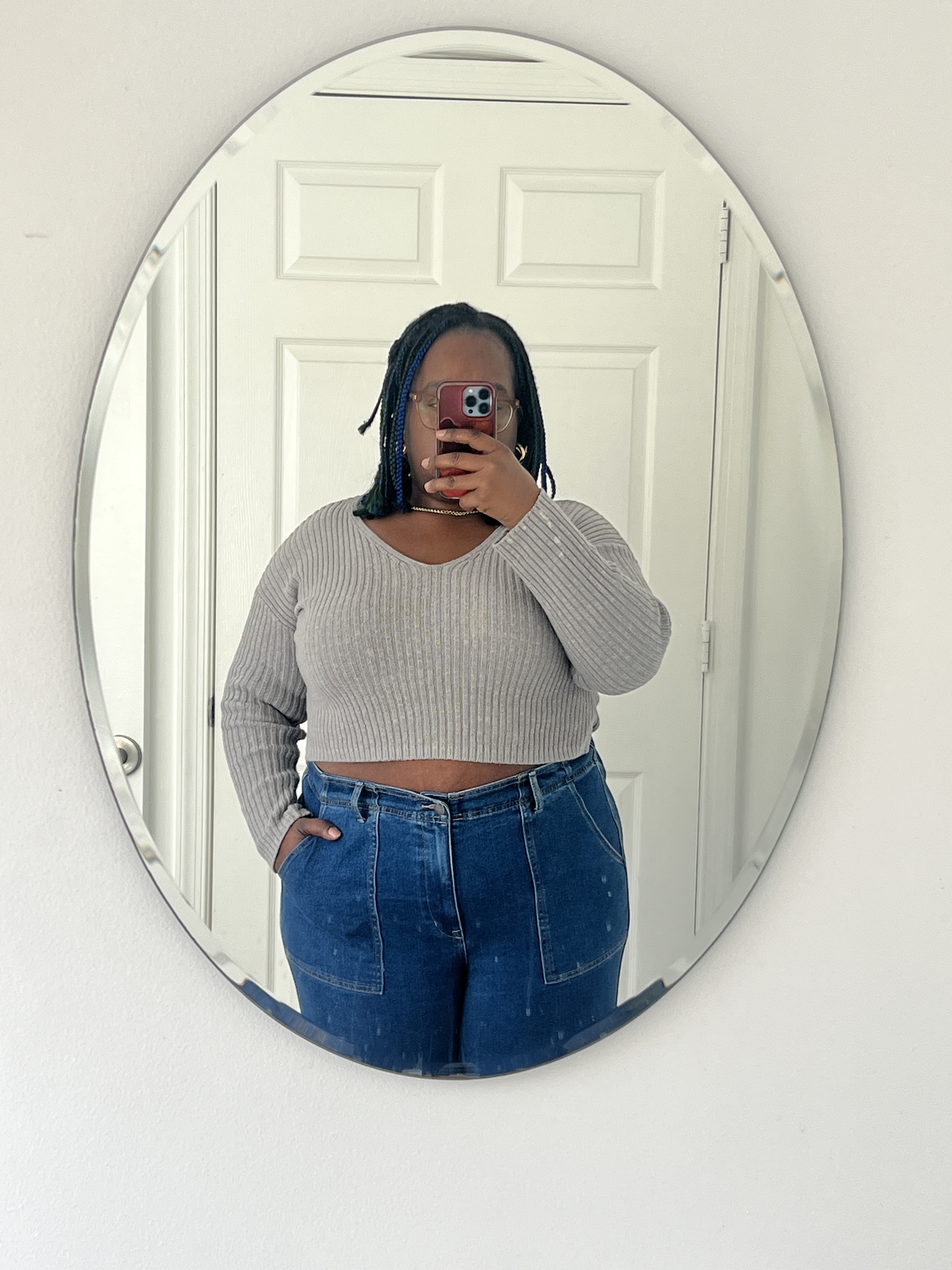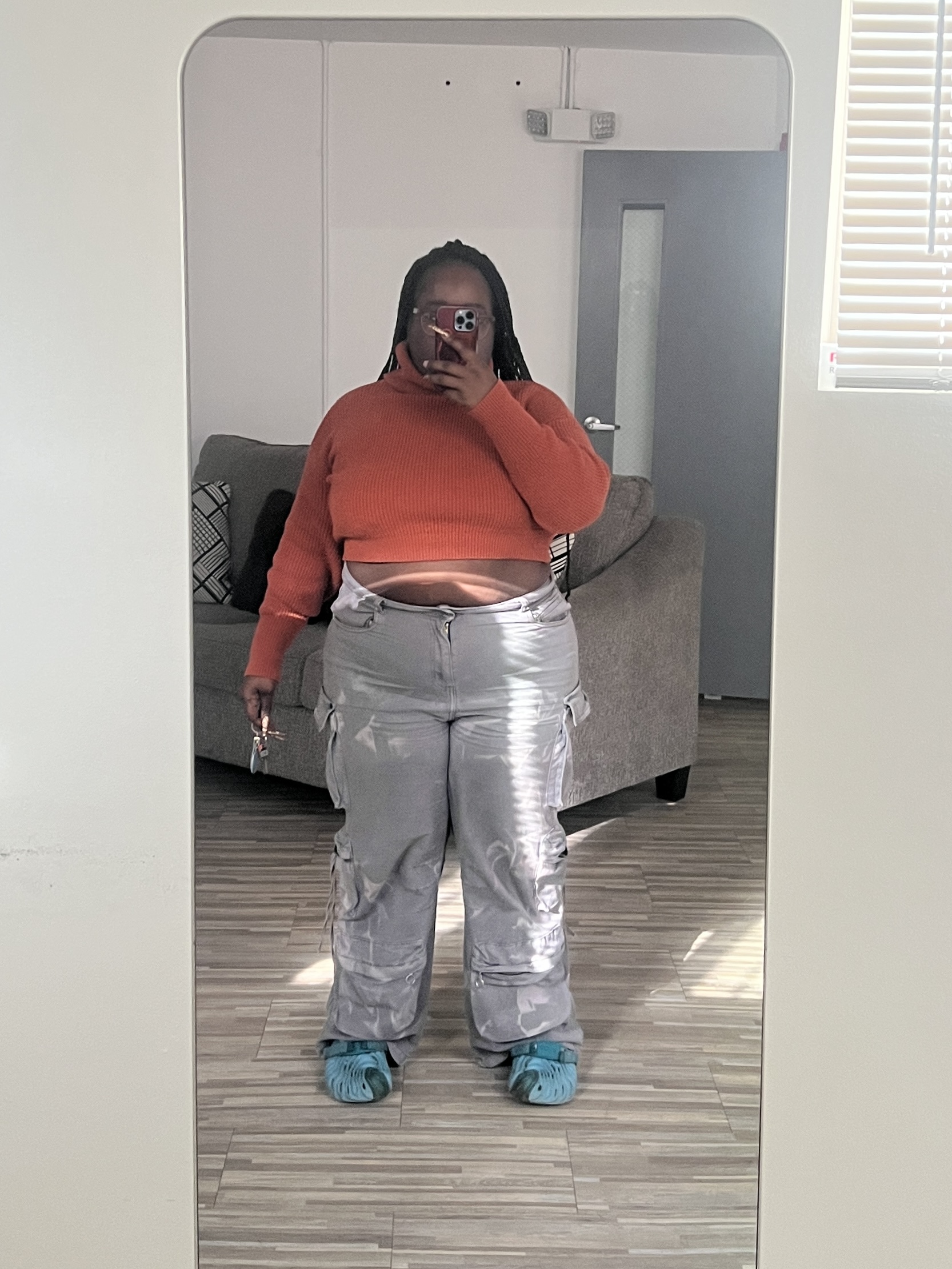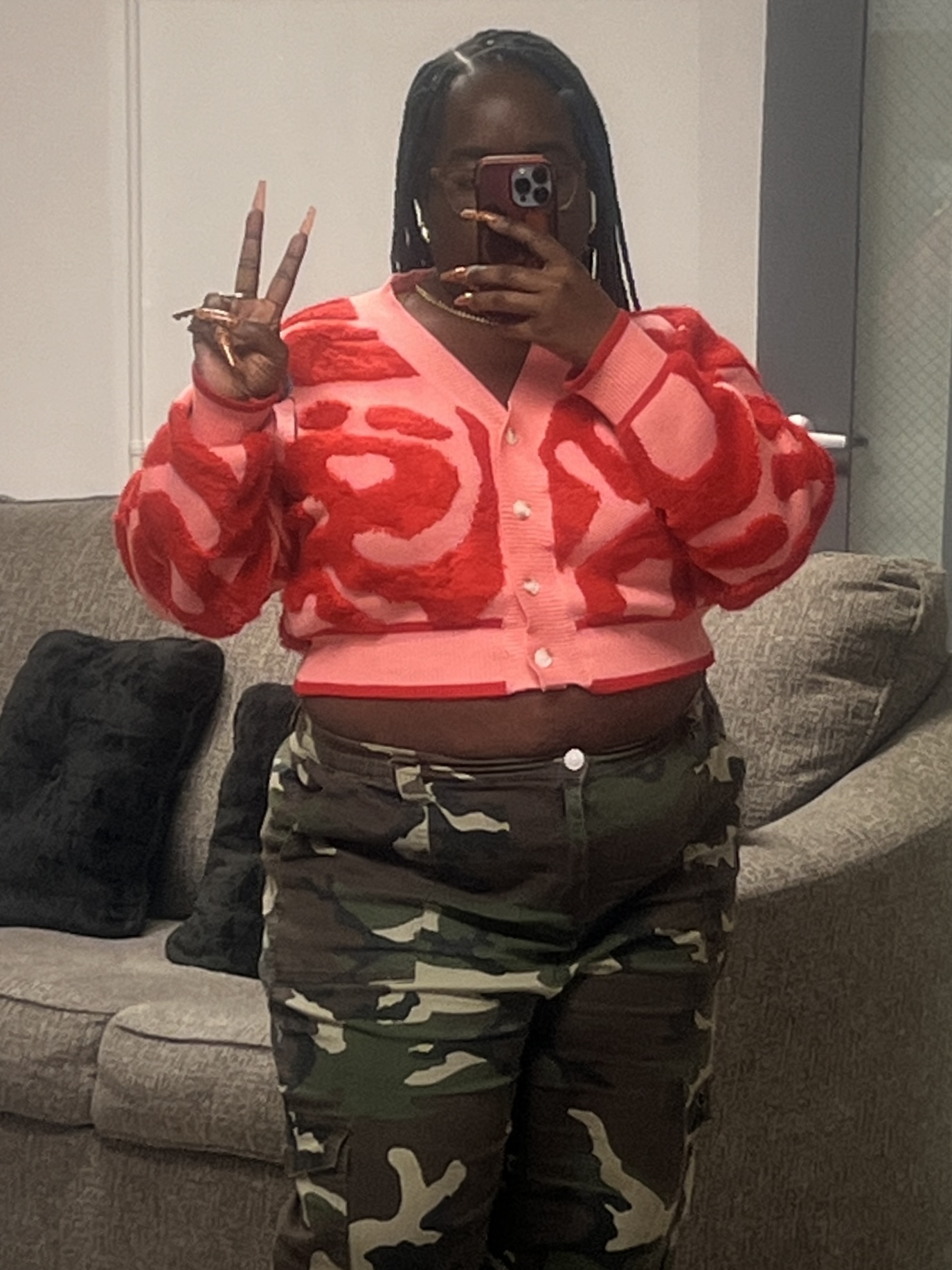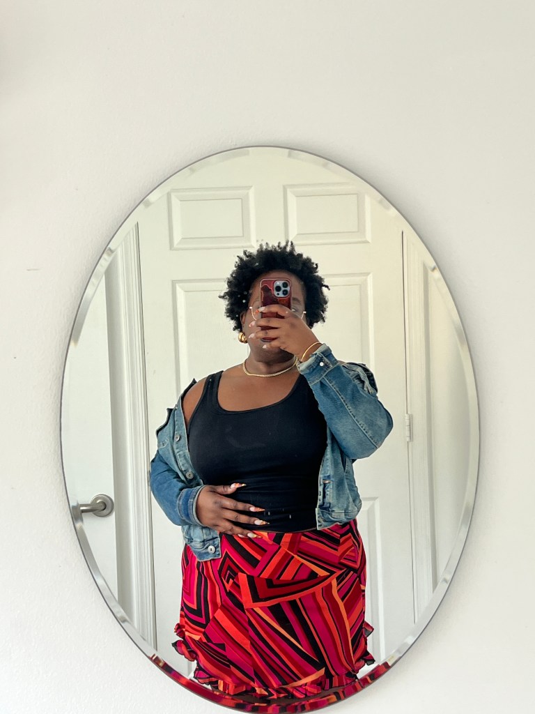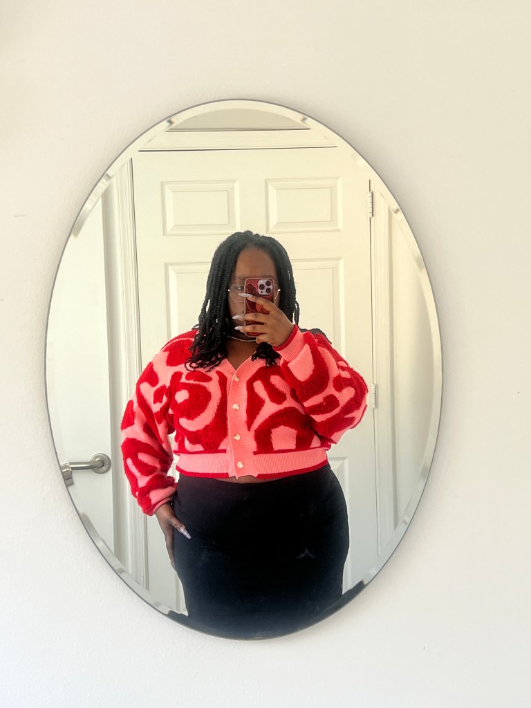It took me a minute to find the right spot to capture each look. At first it was in the mirror in the weight room, but then they converted that room into another office space. I then took my talents back to the office, but I didn’t want everybody in my business. One day I was doing my rounds, and I went into our community room and completely forgot about the bathroom in there. It was enough space, perfect lighting and a mirror that caught my fit just right. I even could get a quick video done with a few turns and lookbacks. Once I started taking my pics in there I realized that I was getting more engagement from my followers and even gaining a few new babes. That let me know I was on the right track.
