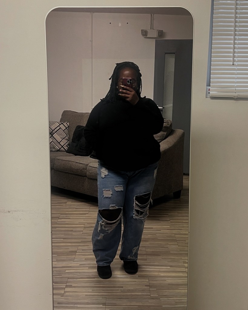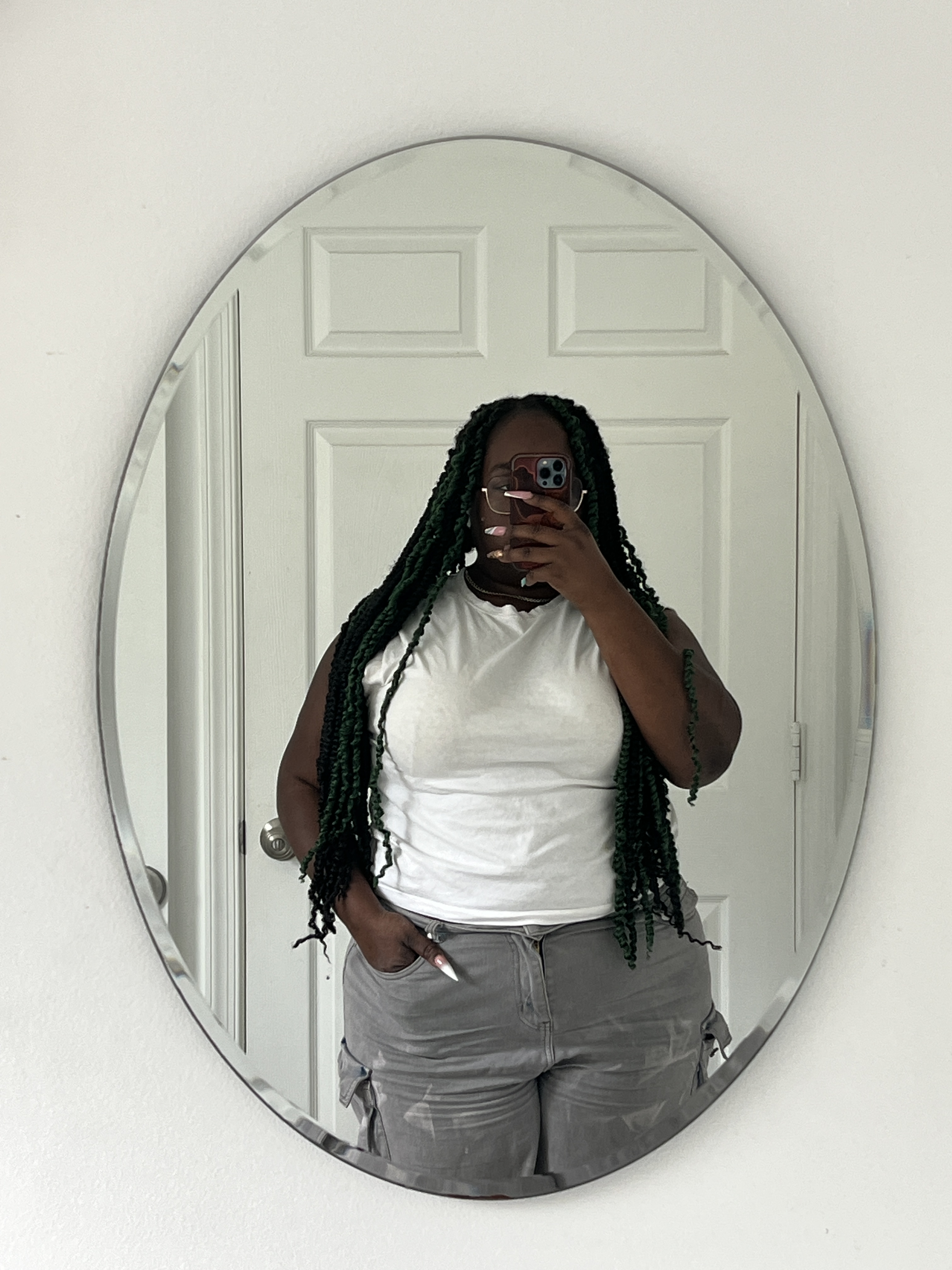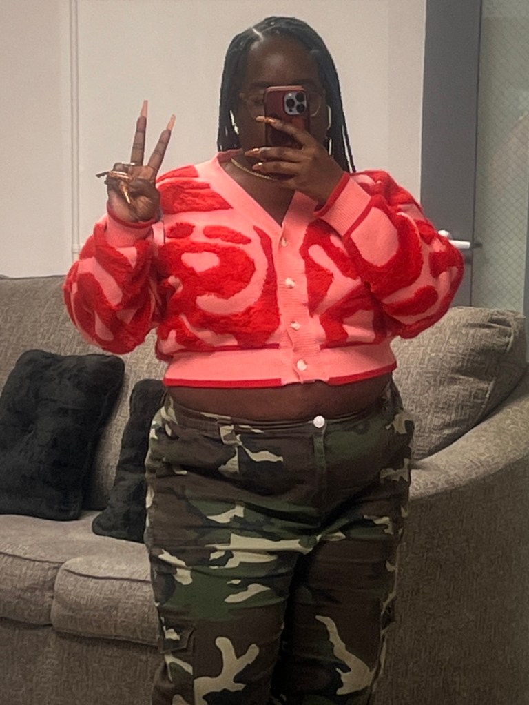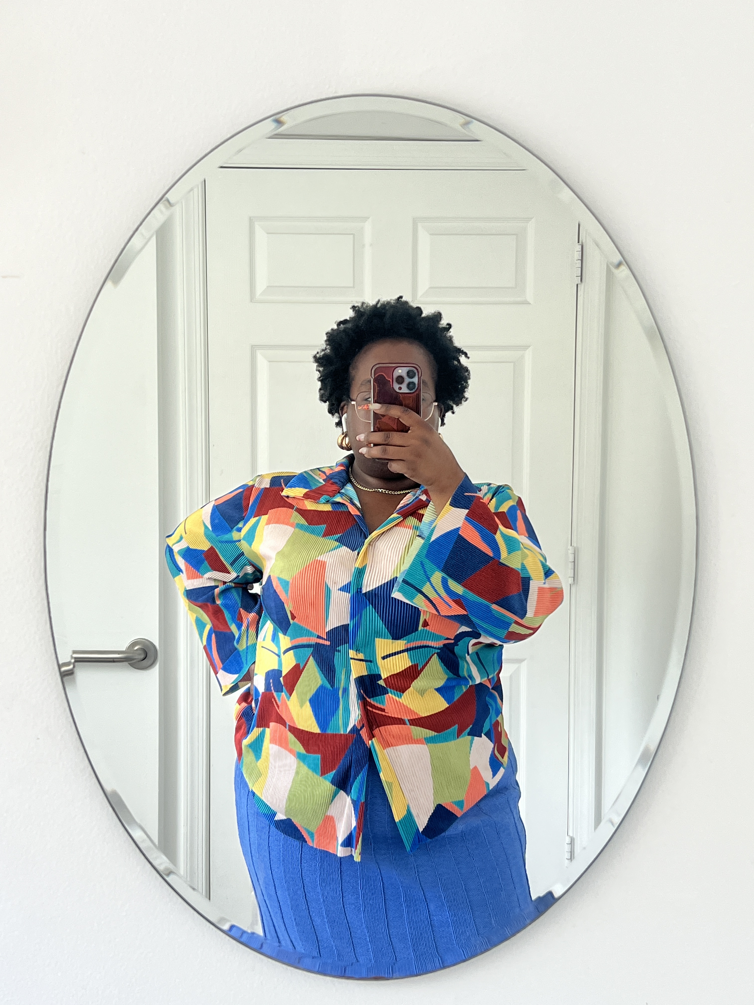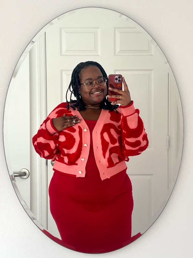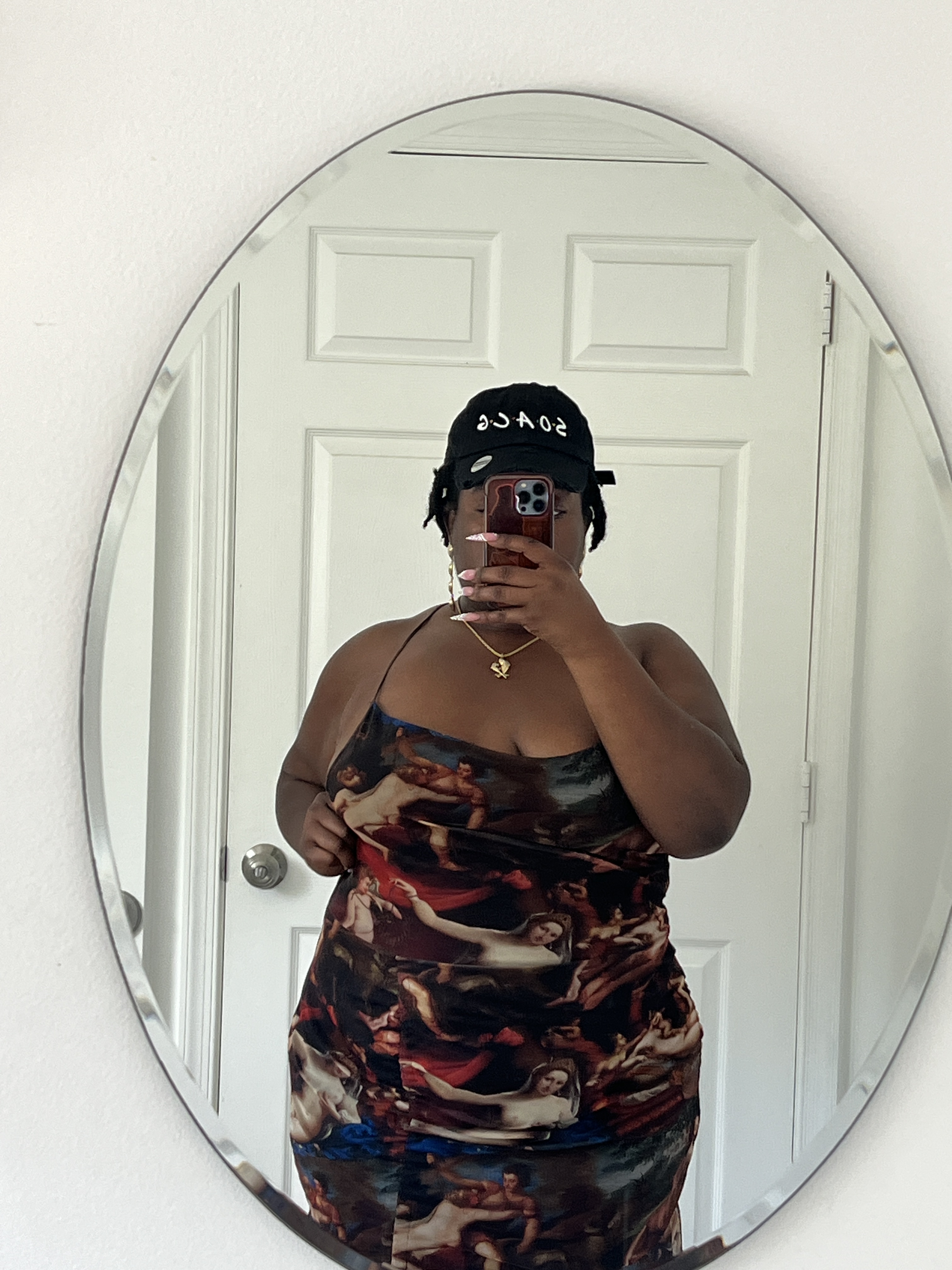 It took me a minute to find the right spot to capture each look. At first it was in the mirror in the weight room, but then they converted that room into another office space. I then took my talents back to the office, but I didn’t want everybody in my business. One day I was doing my rounds, and I went into our community room and completely forgot about the bathroom in there. It was enough space, perfect lighting and a mirror that caught my fit just right. I even could get a quick video done with a few turns and lookbacks. Once I started taking my pics in there I realized that I was getting more engagement from my followers and even gaining a few new babes. That let me know I was on the right track.