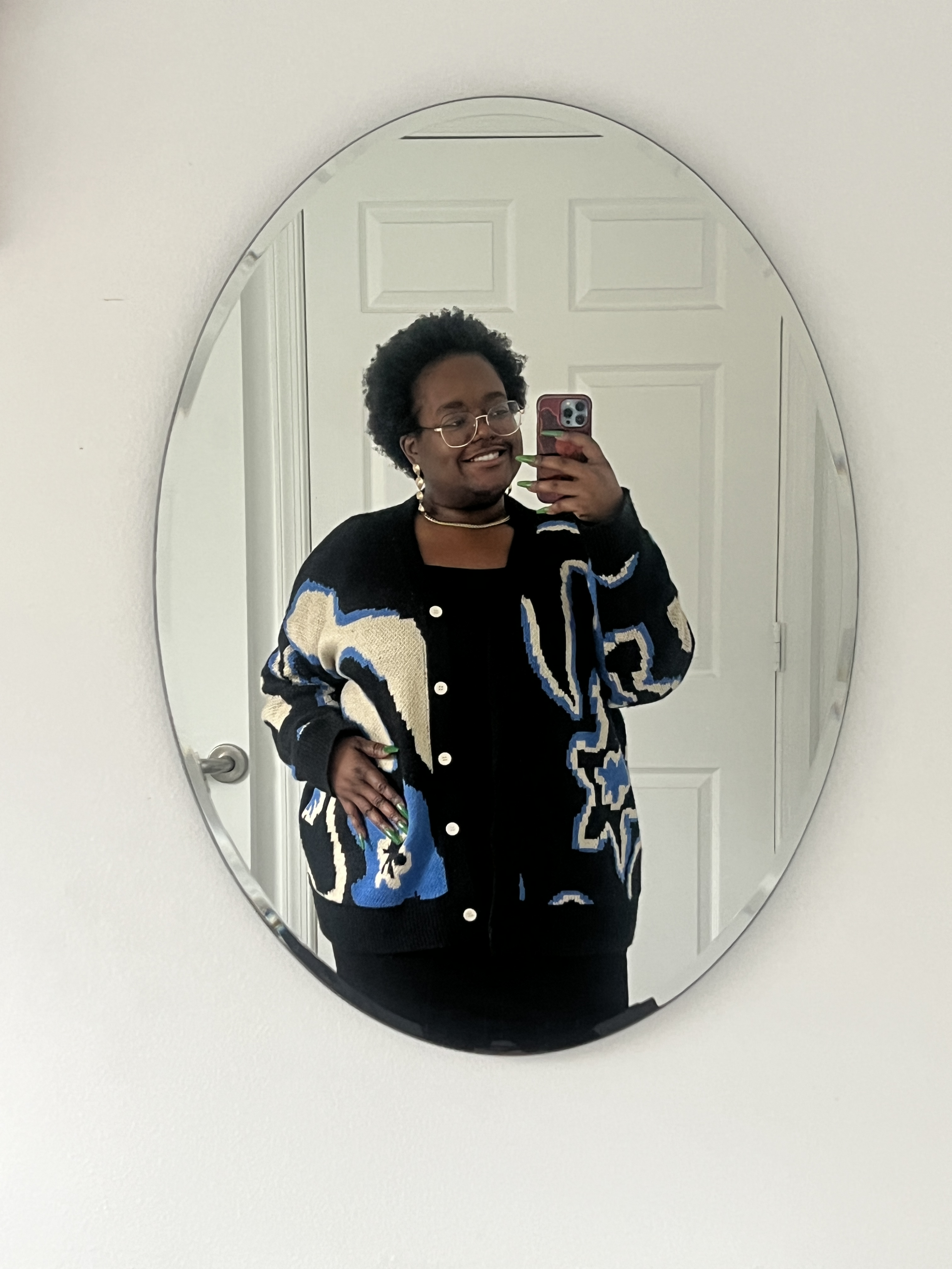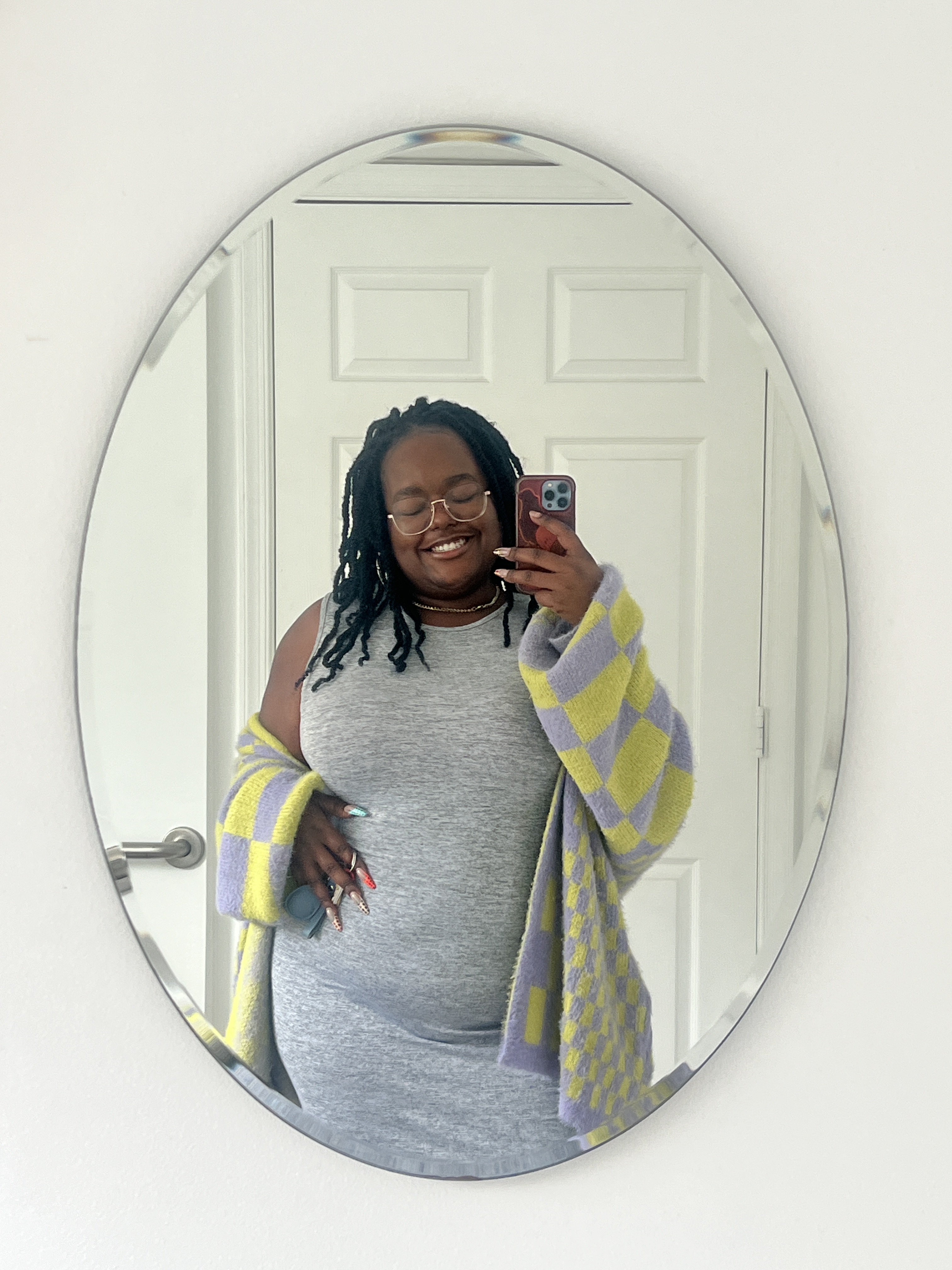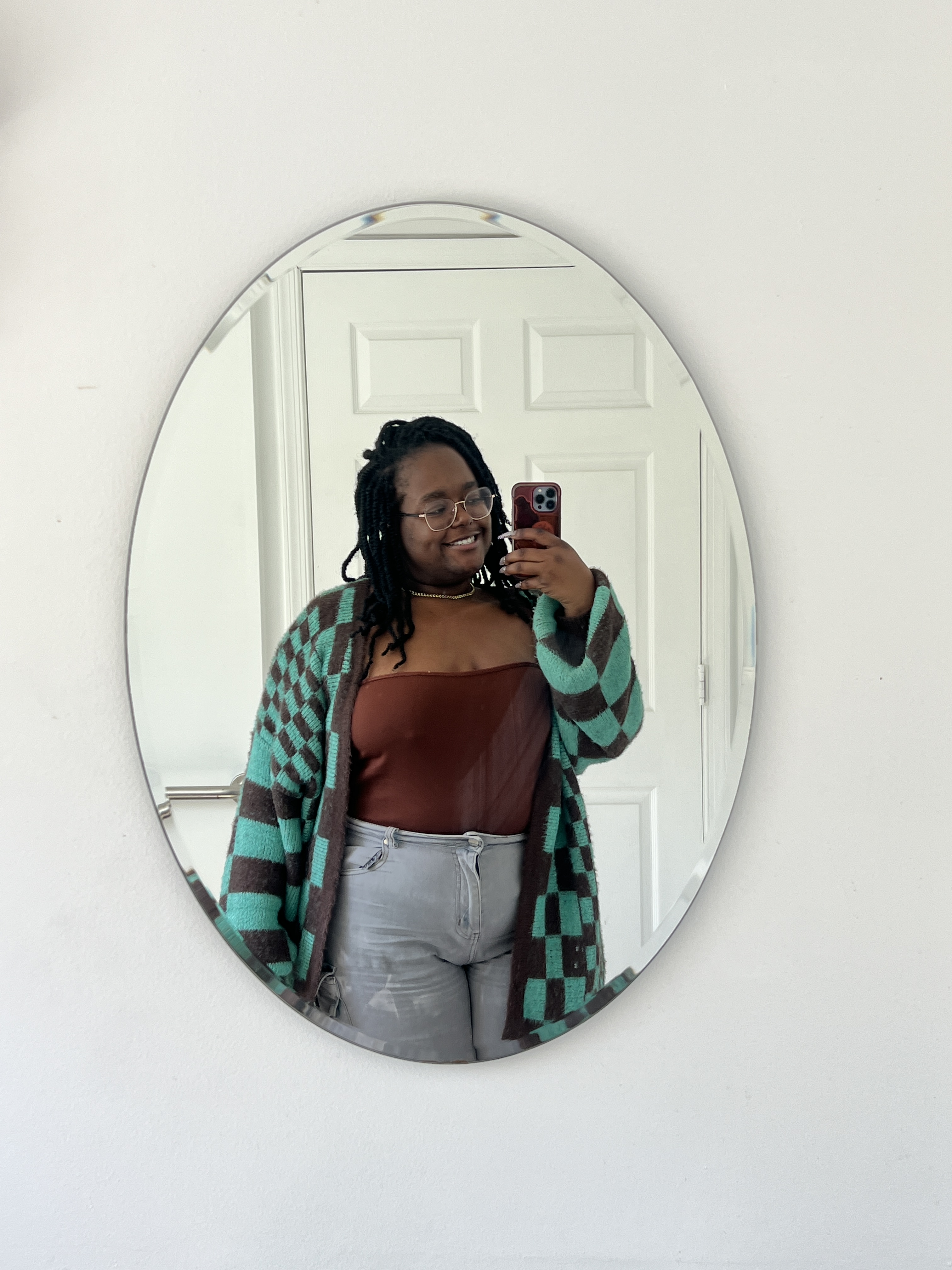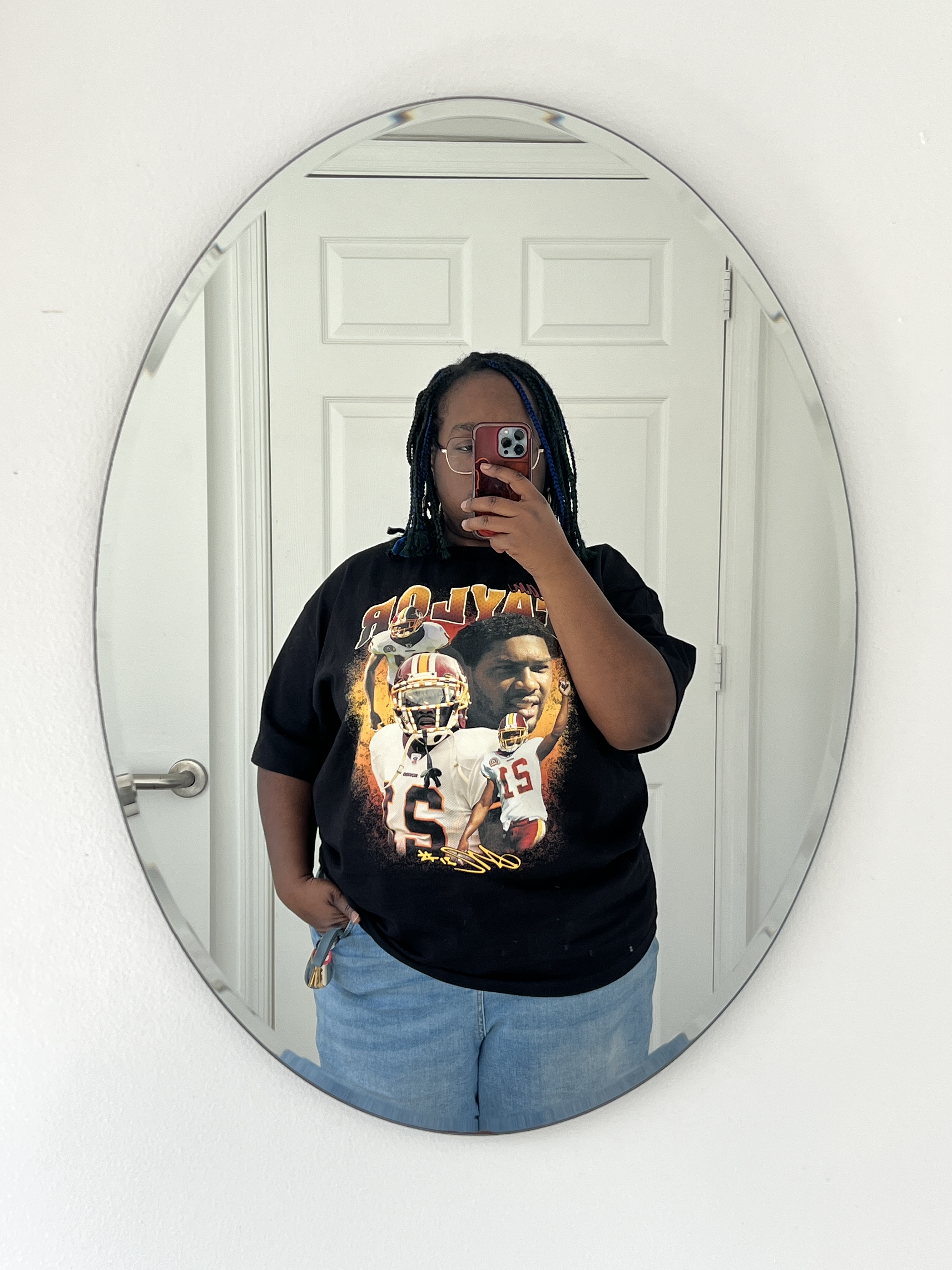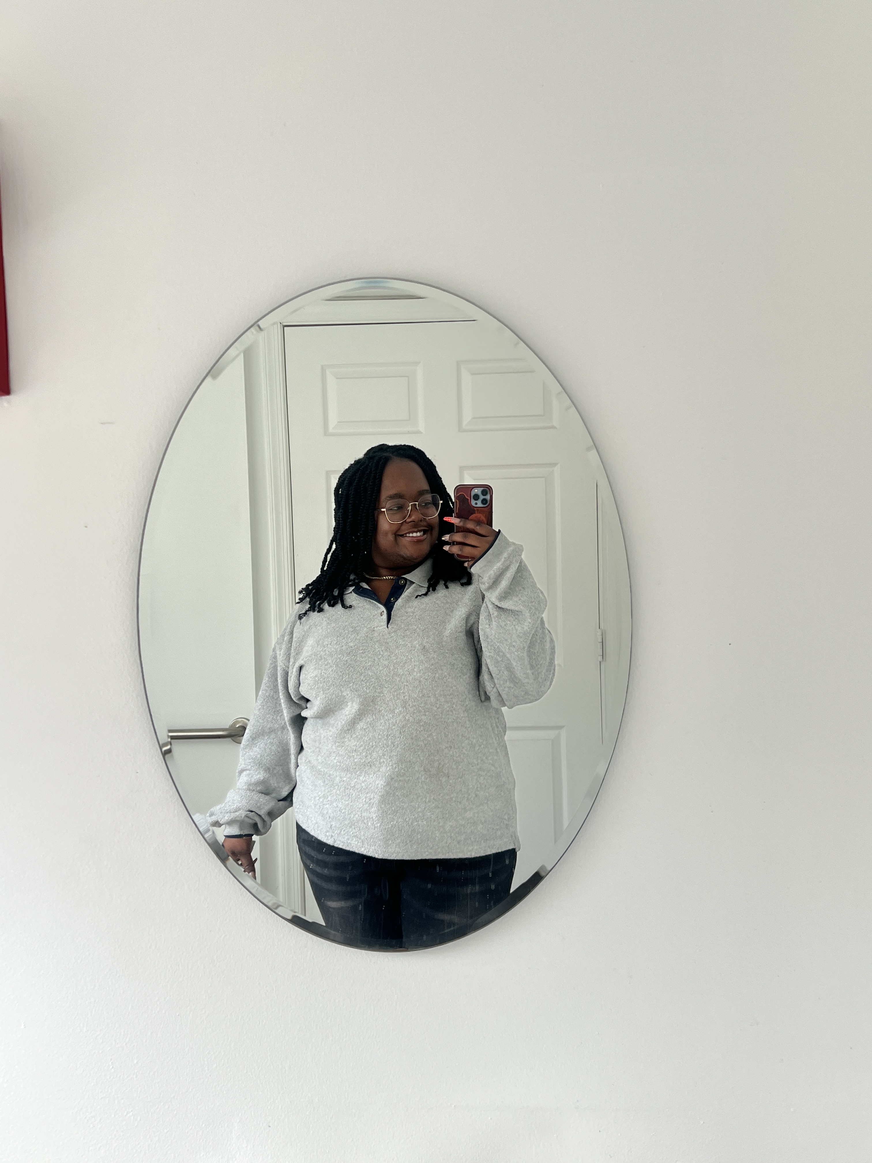 It took me a minute to find the right spot to capture each look. At first it was in the mirror in the weight room, but then they converted that room into another office space. I then took my talents back to the office, but I didn’t want everybody in my business. One day I was doing my rounds, and I went into our community room and completely forgot about the bathroom in there. It was enough space, perfect lighting and a mirror that caught my fit just right. I even could get a quick video done with a few turns and lookbacks. Once I started taking my pics in there I realized that I was getting more engagement from my followers and even gaining a few new babes. That let me know I was on the right track.